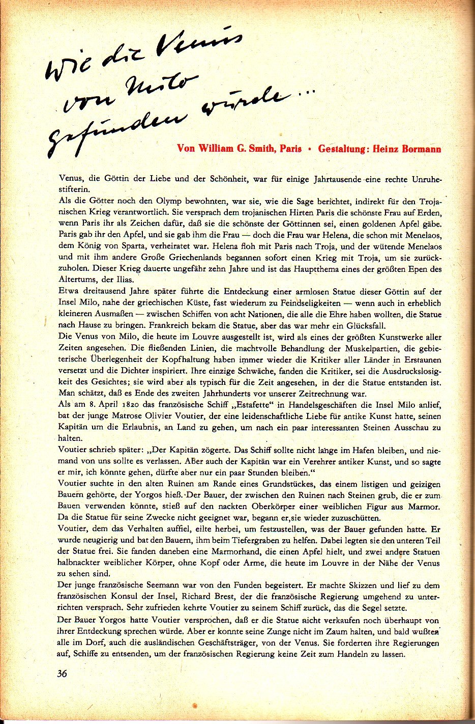 Das Magazin 57-05-36 William G Smith, Wie die Venus von Milo gefunden wurde