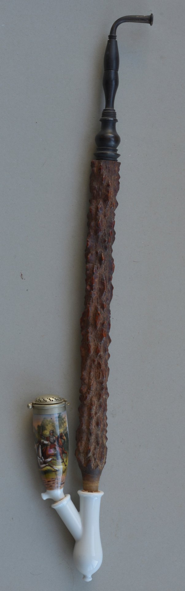 Orientalisierende Genre-Szene mit Reitern und bewaffneten Figuren, Gesteckpfeife mit Porzellanmalerei, D2717