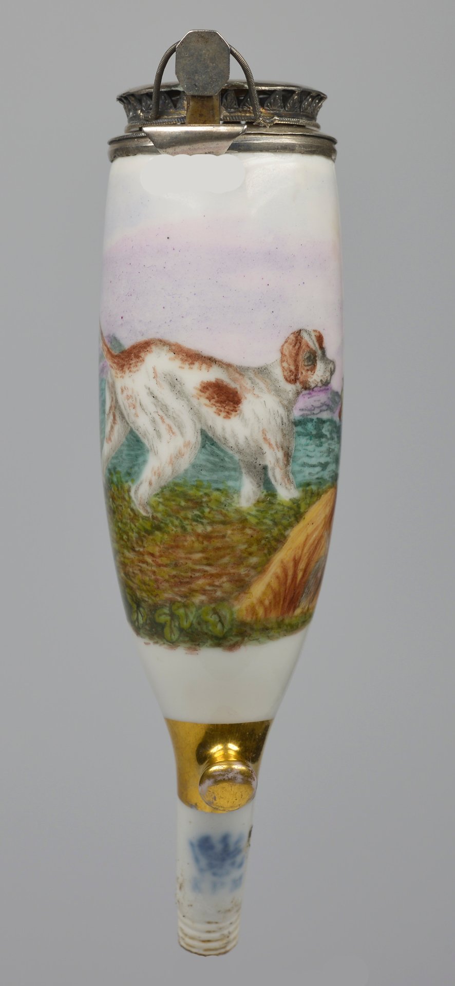 Jagdhund und Abguss, Porzellanmalerei, Pfeifenkopf, D2799