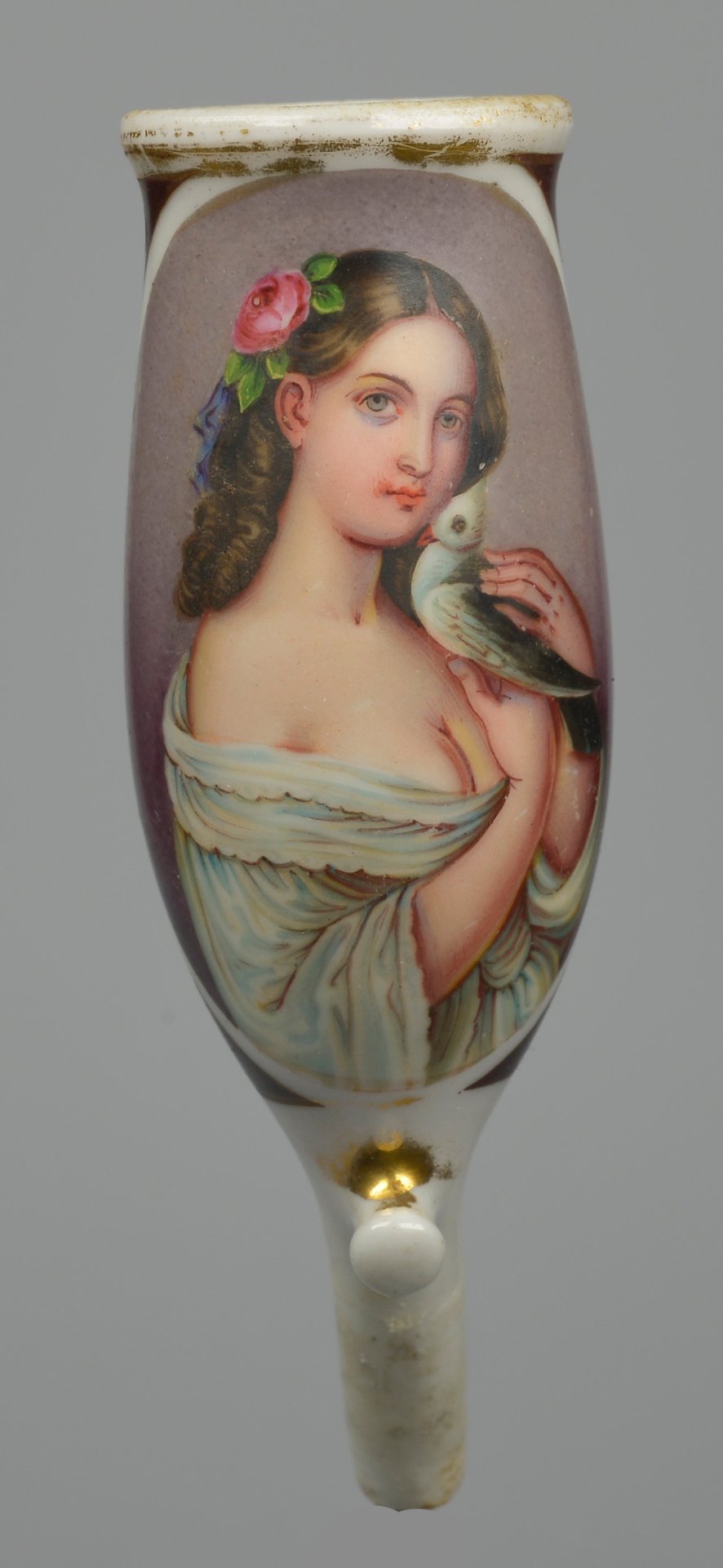 Mädchen mit Taube, Porzellanmalerei, Pfeifenkopf, D2845