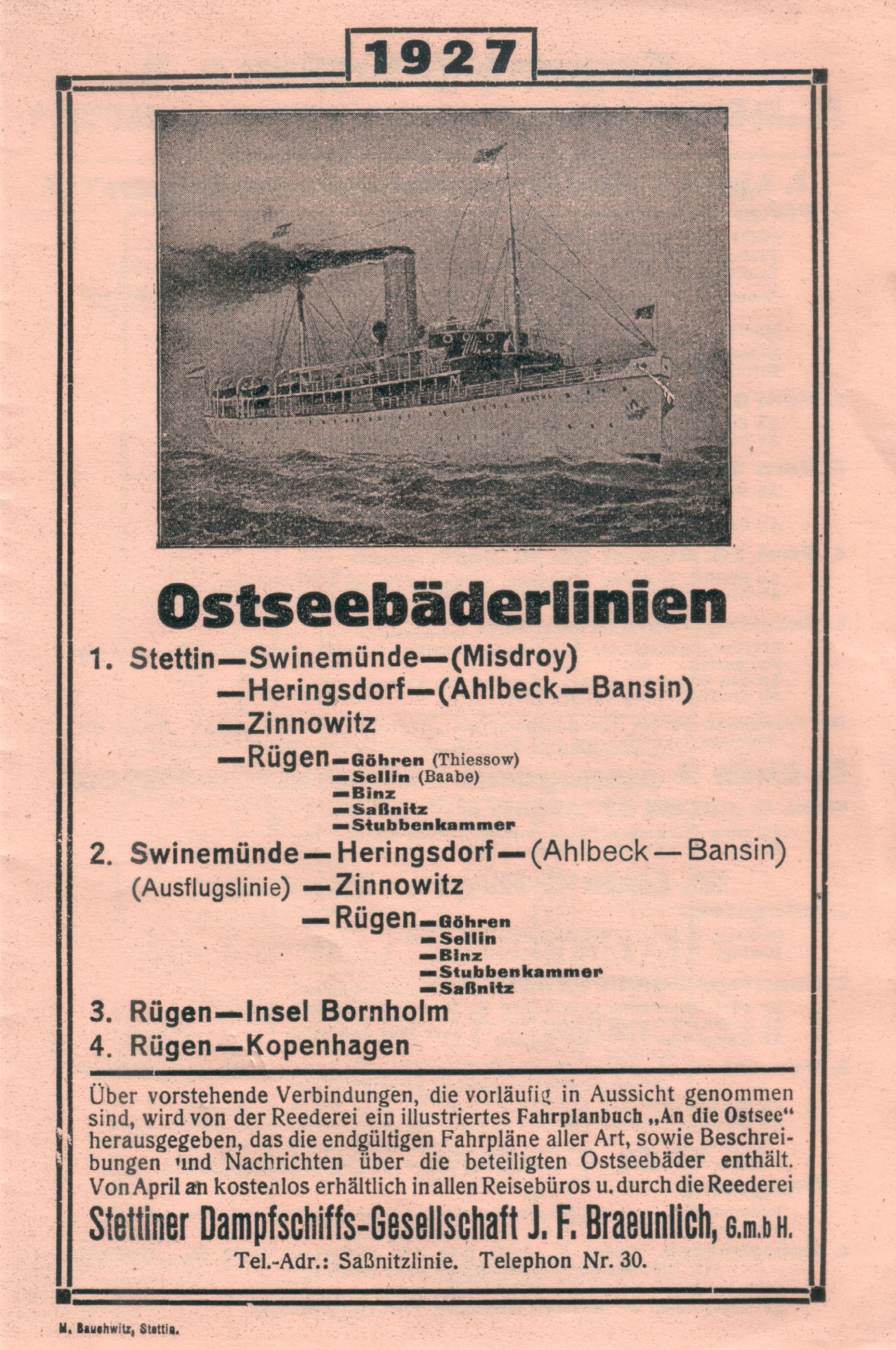 Dampfschifffahrt Ostseebäder 1927