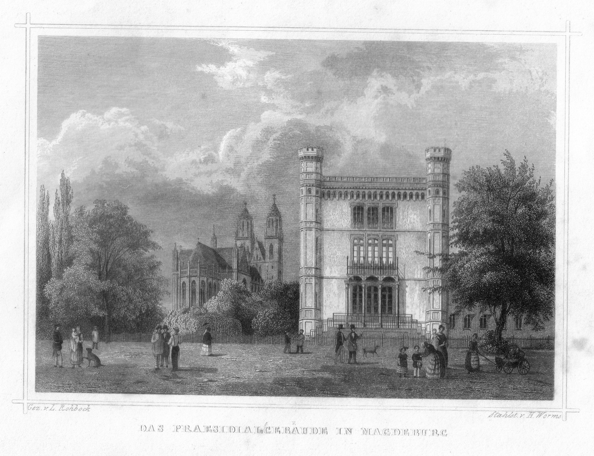 H.Worms, Das Präsidialgebäude in Magdeburg, Stahlstich nach L. Rohbock, D0832