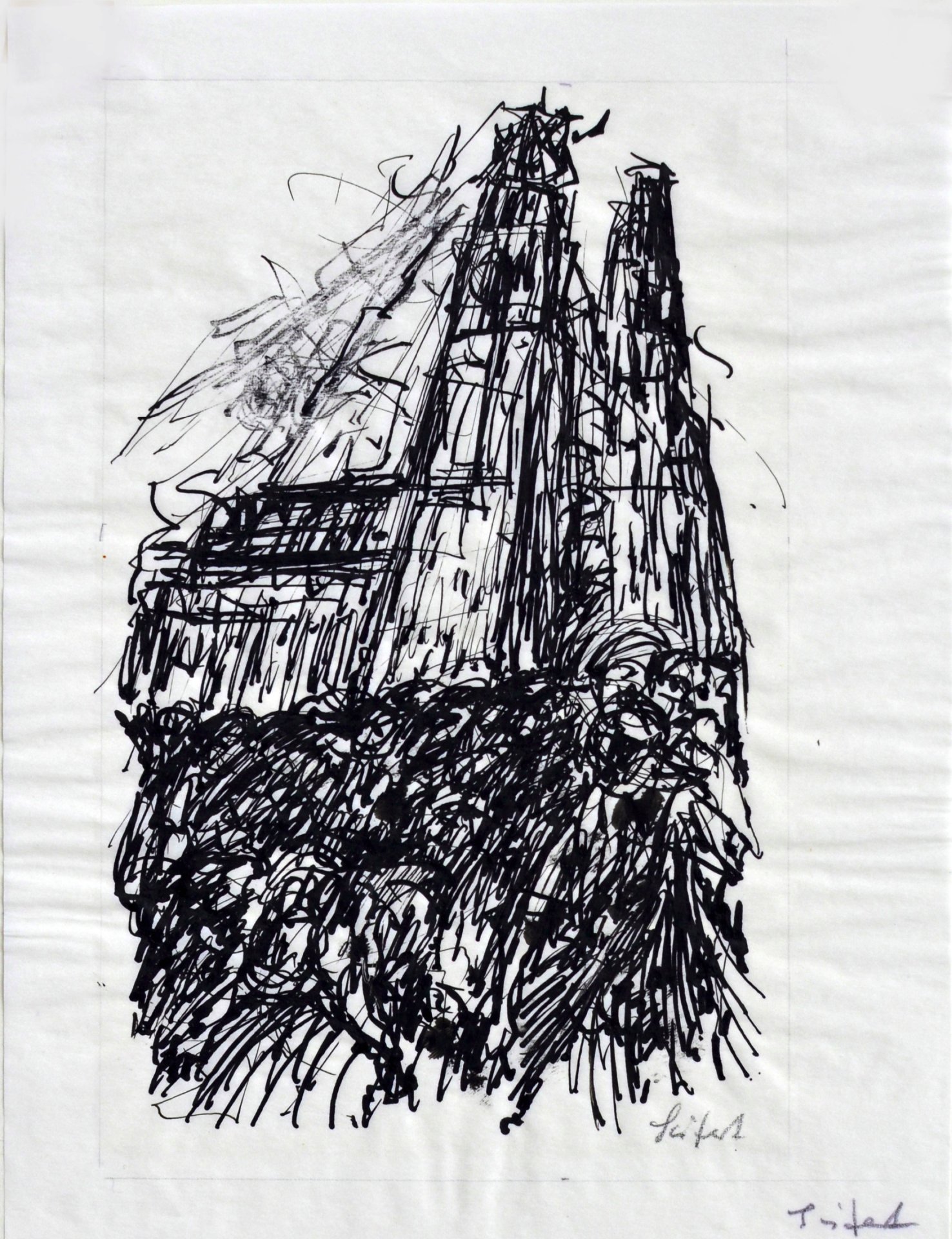 Ernst Seifert (1922-1976), Federzeichnung, „Demonstration auf dem Domplatz“, D0374