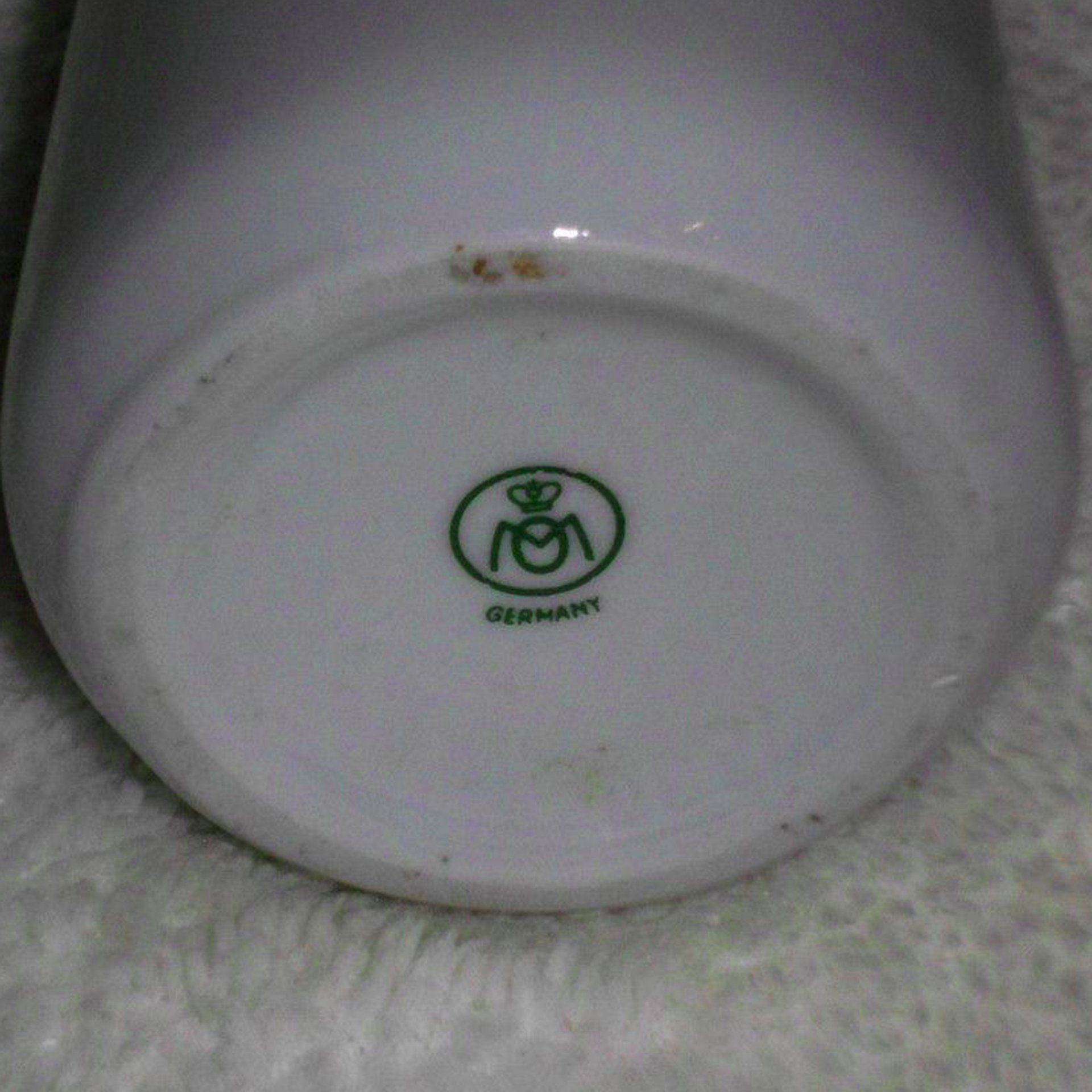 Vase, Weißporzellan, runder Standfuß, nach Ausweitung sich nach oben verjüngend, Aufdruck der Magdeburger Reiter, darunter „ SILVESTER 1970/71 RATSKELLER MAGDEBURG“, H.: 14 cm