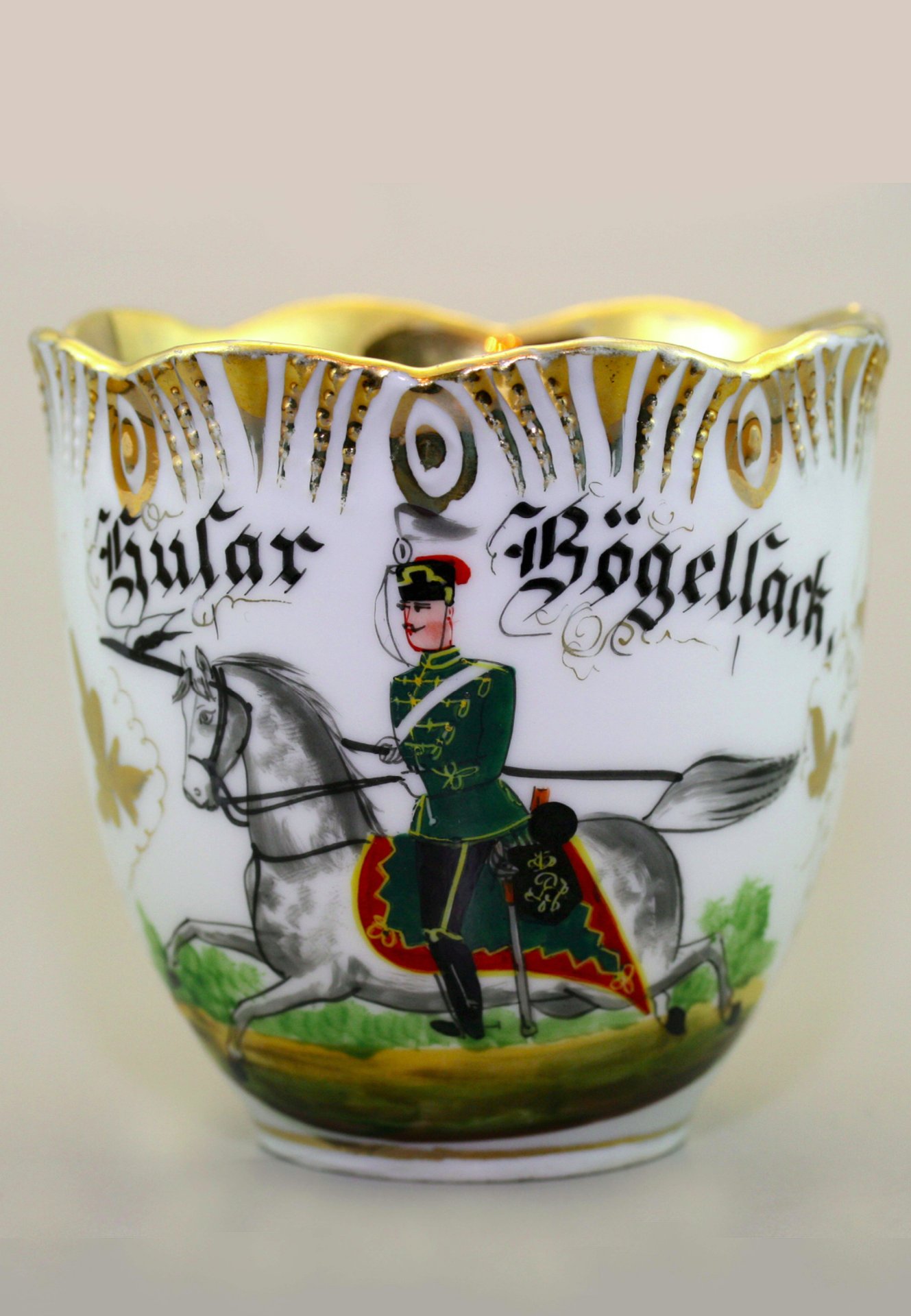 Auf der Schauseite Husar zu Pferd mit Namenszug Husar Bögelsack; an den Seiten: