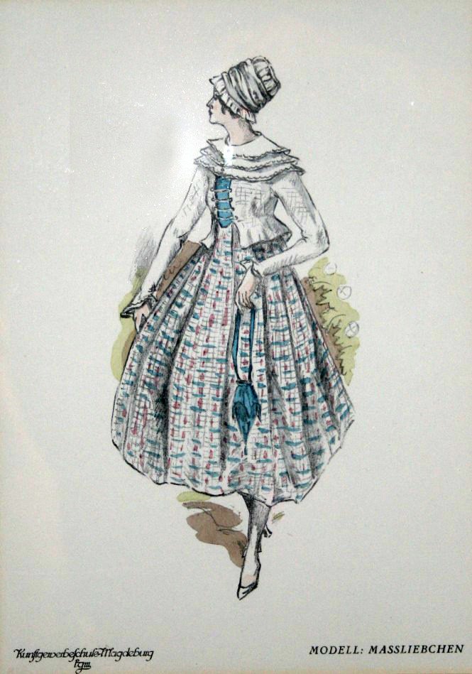 Kunstgewerbeschule Magdeburg, um 1920, Mode-Klasse Prof. Bosselt, Kleid Modell „Massliebchen“
