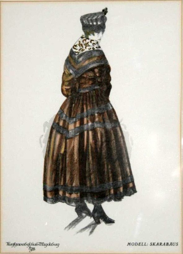 Kunstgewerbeschule Magdeburg, um 1920, Mode-Klasse Prof. Bosselt, Kleid Modell „Skarabäus“