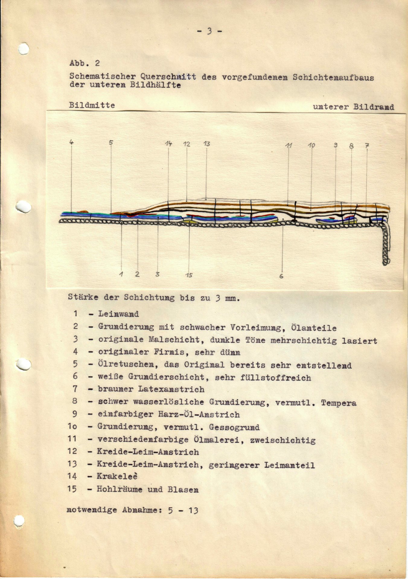 •    1985, Mai – Sammlung Dauer von Privat in Magdeburg, schlechter Zustand, schwerwiegend im unteren Viertel dicke, teilweise neunfache Anstriche mit unterschiedlichen Bindemitteln, Signatur, wenn vorhanden, mehrfach überdeckt,
