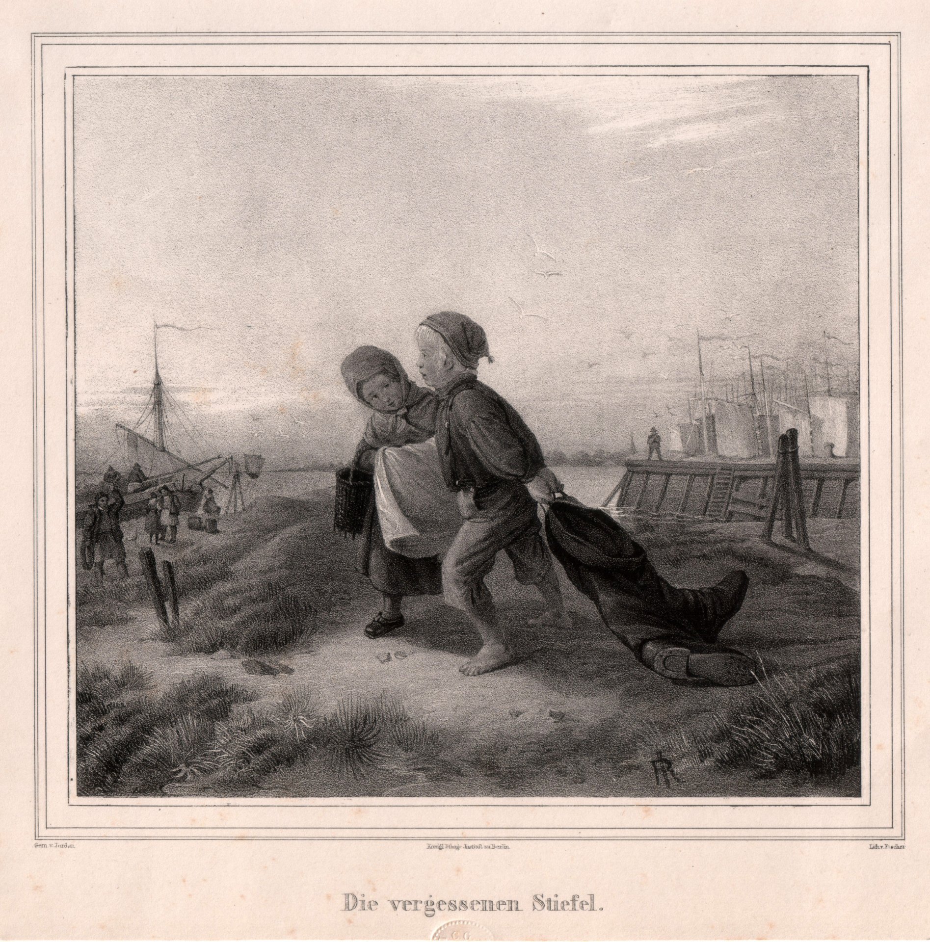 Carl Fischer (1809-1874), Der vergessene Stiefel, Kreidelithographie nach R. Jordan, D2318