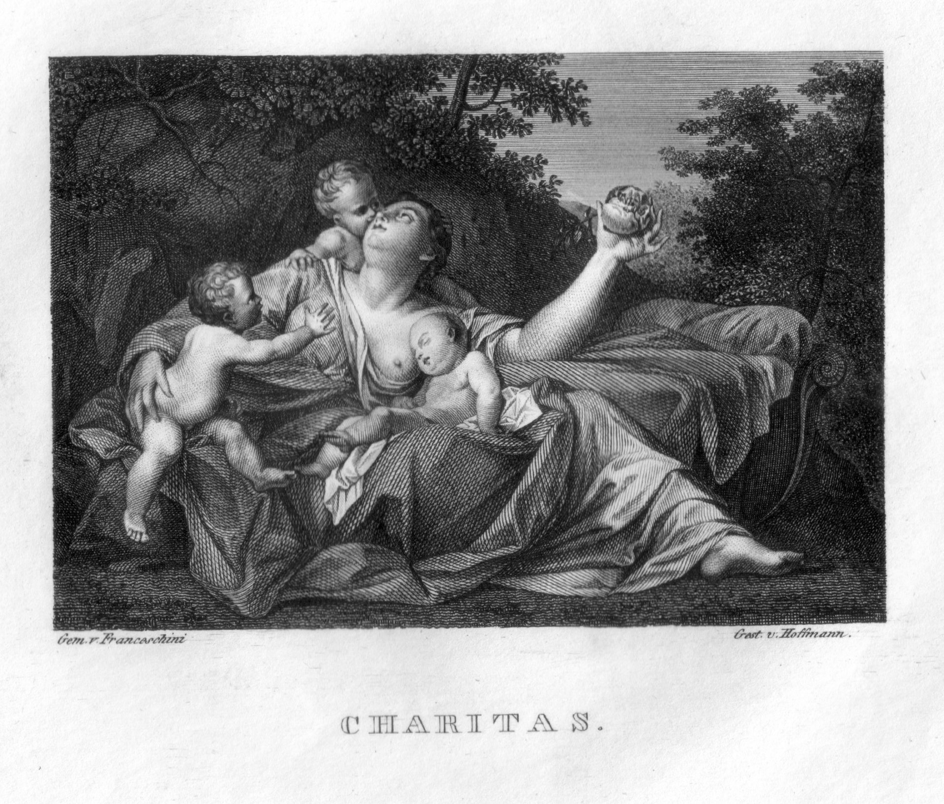 August Hoffmann (1810-1872), Charitas, Kupferstich nach B. Franceschini, D2400-5