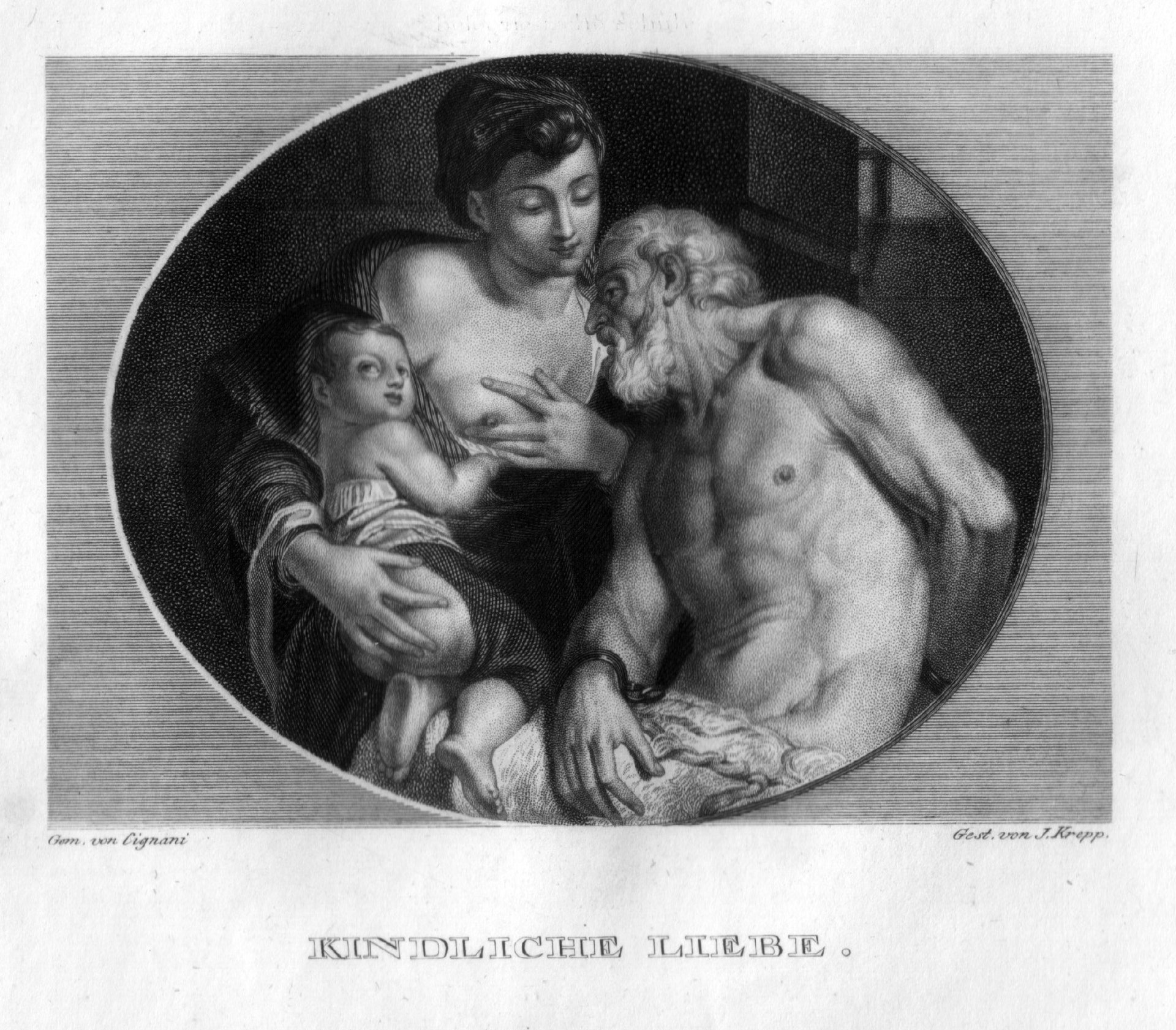 Ignaz Krepp (1801-1853), Kindliche Liebe, Kupferstich nach C. Cignani, D2400-6