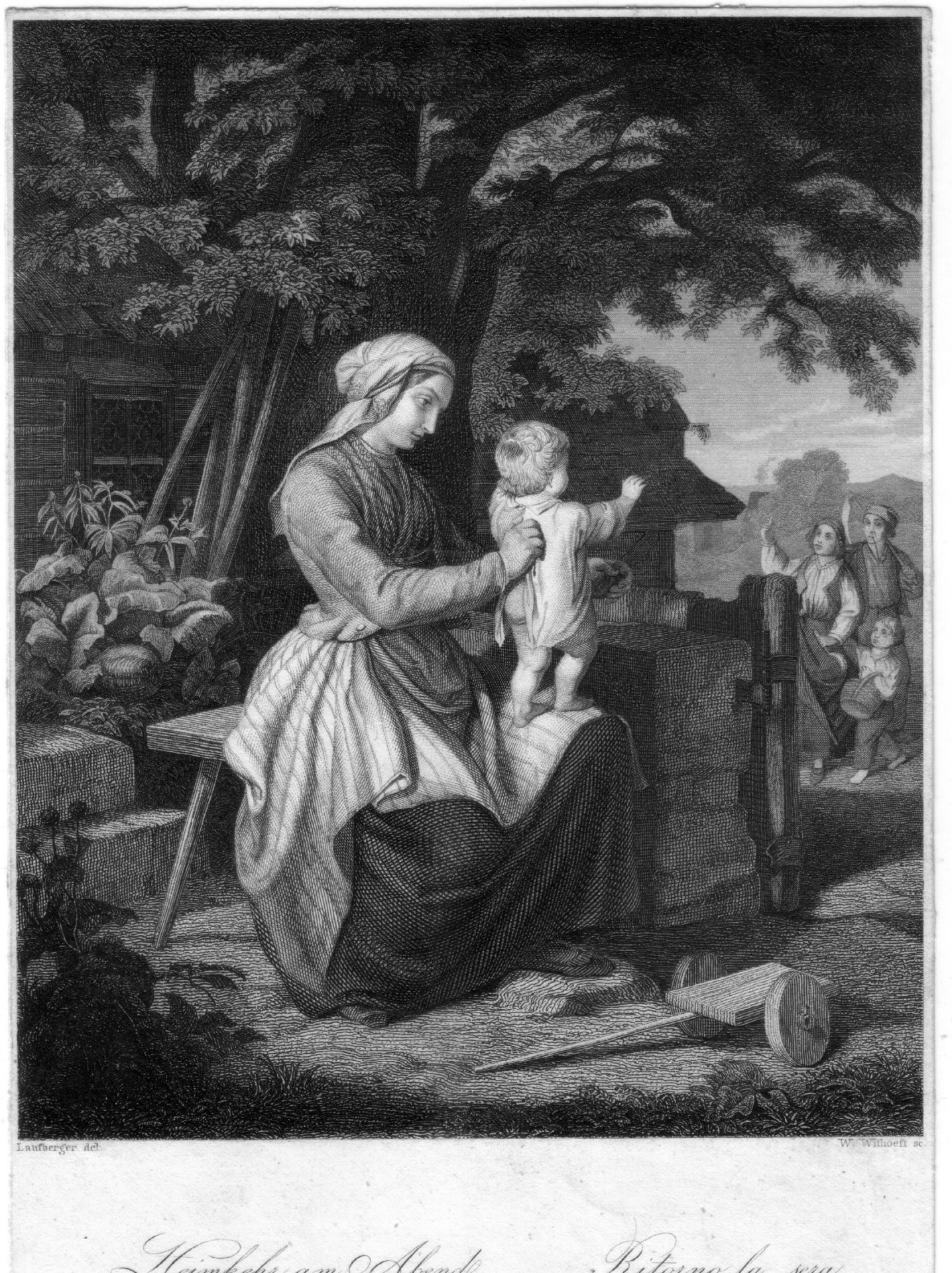 Stahlstich nach Ferdinand Laufberger (1829-1881), bezeichnet: Heimkehr am Abend – Ritorno la sera;  beinahe auf Abbildung beschnitten: 21,2 x 14,5 cm