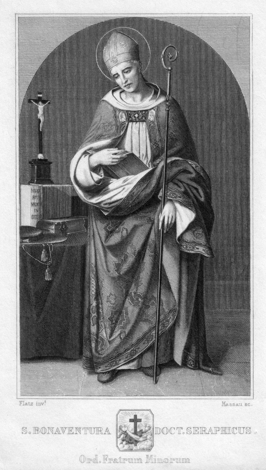 Stahlstich nach Gebhard Flatz (1800-1881), bezeichnet: „S, Bonaventura Doct. Seraphicus, Ord. Fratrum Minorum“; Blatt: 18,1 x 10,6 cm; Abbildung: 13,5 x 8,3 cm