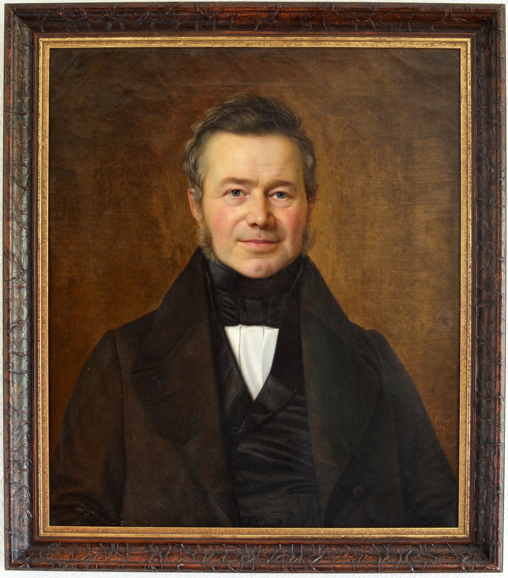 Gemälde, Halbportrait eines Herren, Öl/Lw. Rechts auf Brusthöhe signiert und datiert „Sieg 1841“, Rahmen ergänzt: 75,5 x 66,5 cm, Gemälde: 65 x 55 cm
