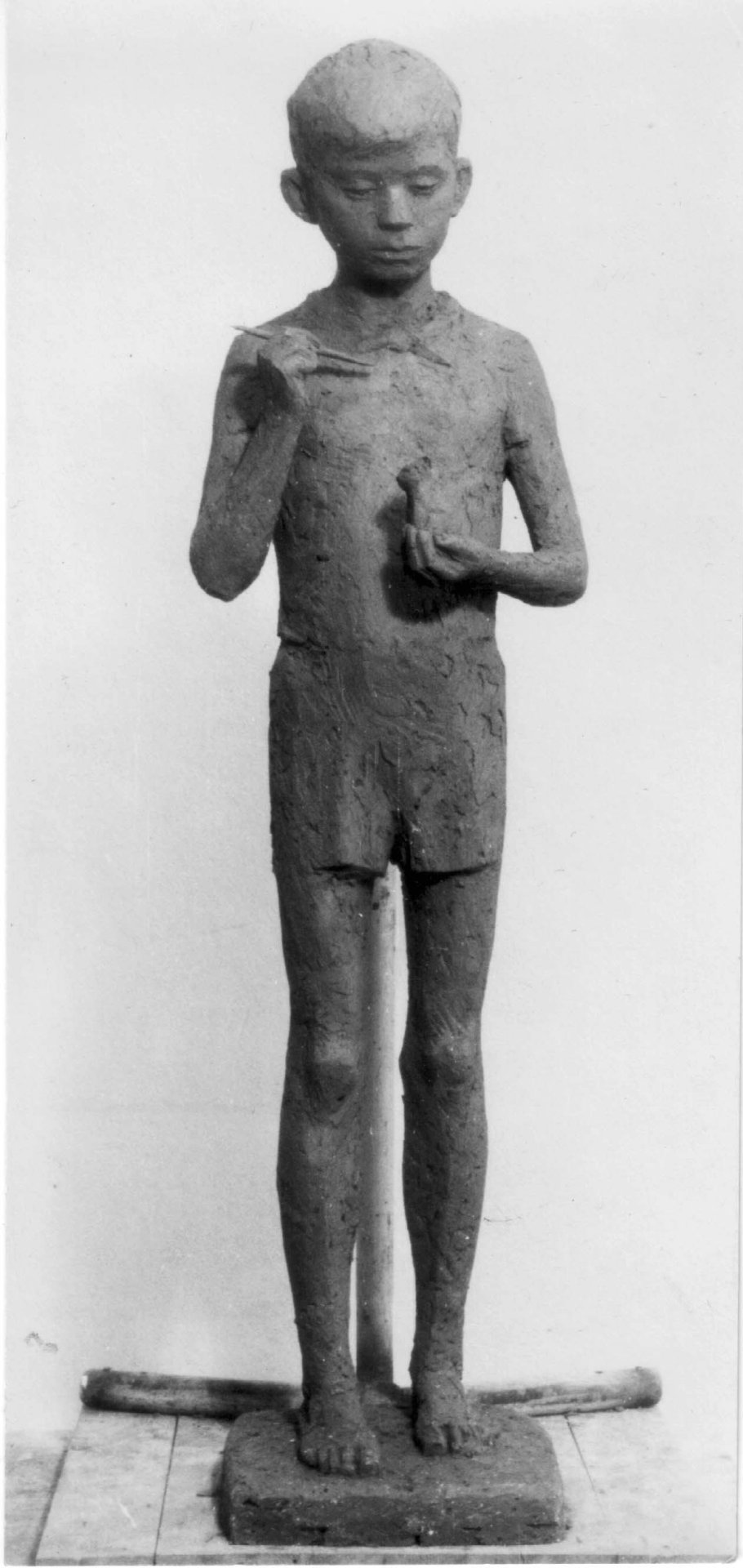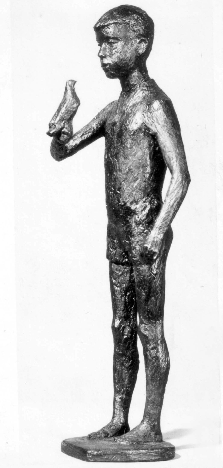•    1961 – Entwurf 2 „Stehender Junge“, 27 cm, Gips getönt (siehe Foto)