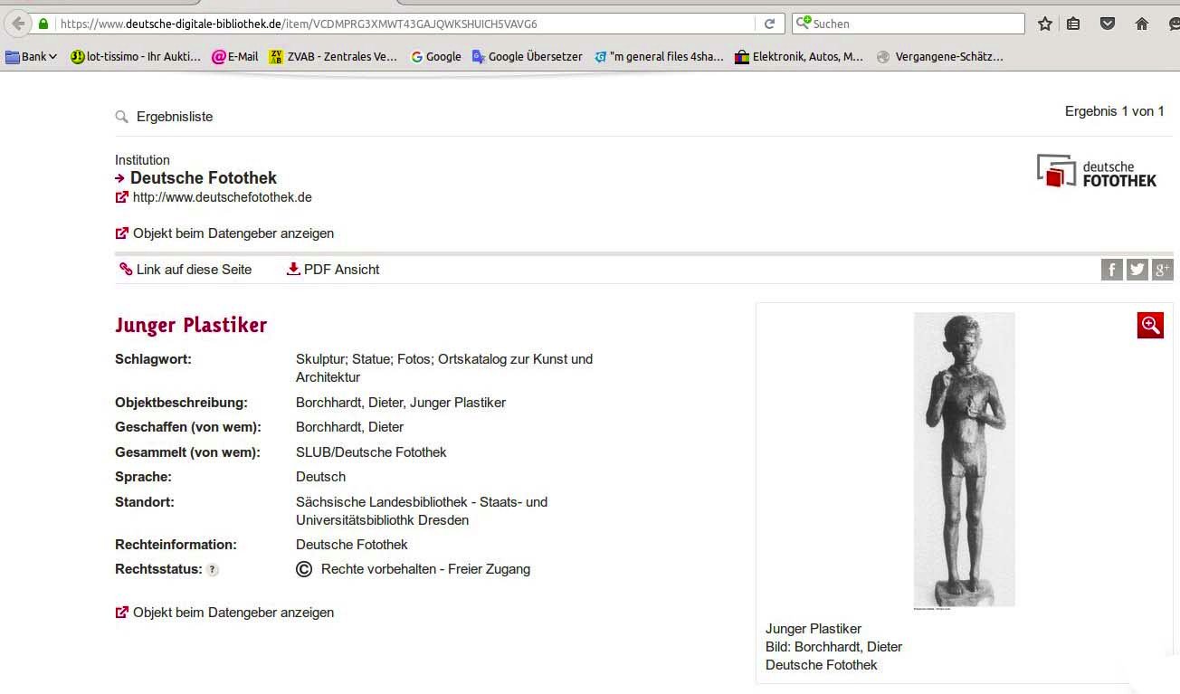 finden Sie in der Deutschen Digitalen Bibliothek die Abbildung einer Plastik von Dieter Borchhardt, die der Abbildung, die Sie als Anhang mitgeschickt haben, sehr ähnelt.“