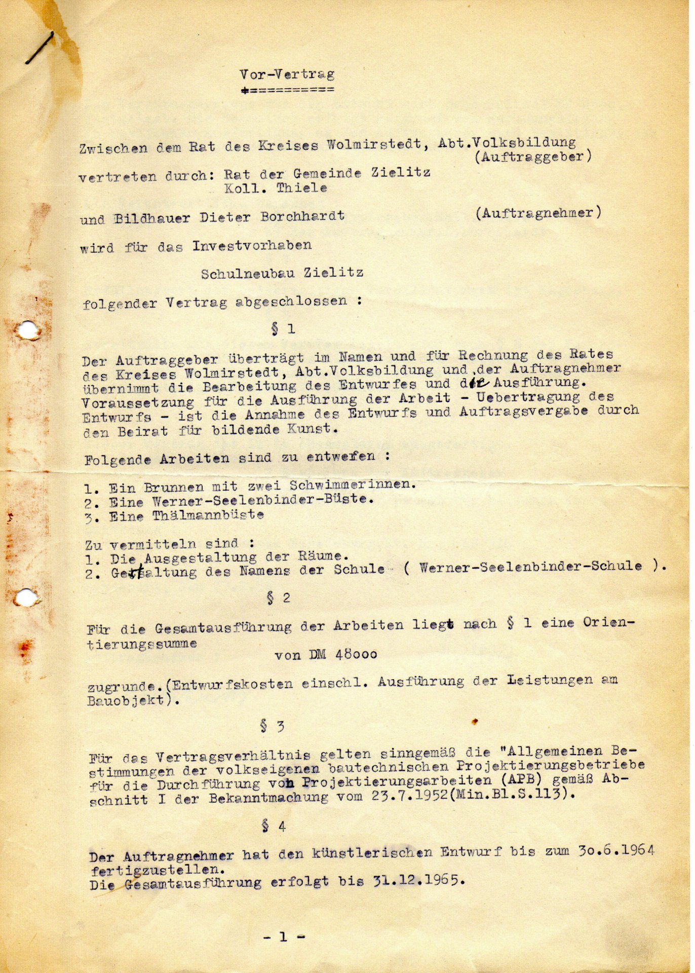 27.02.1964 Vorvertrag Rat d. Kr. Wolmirstedt und Künstler