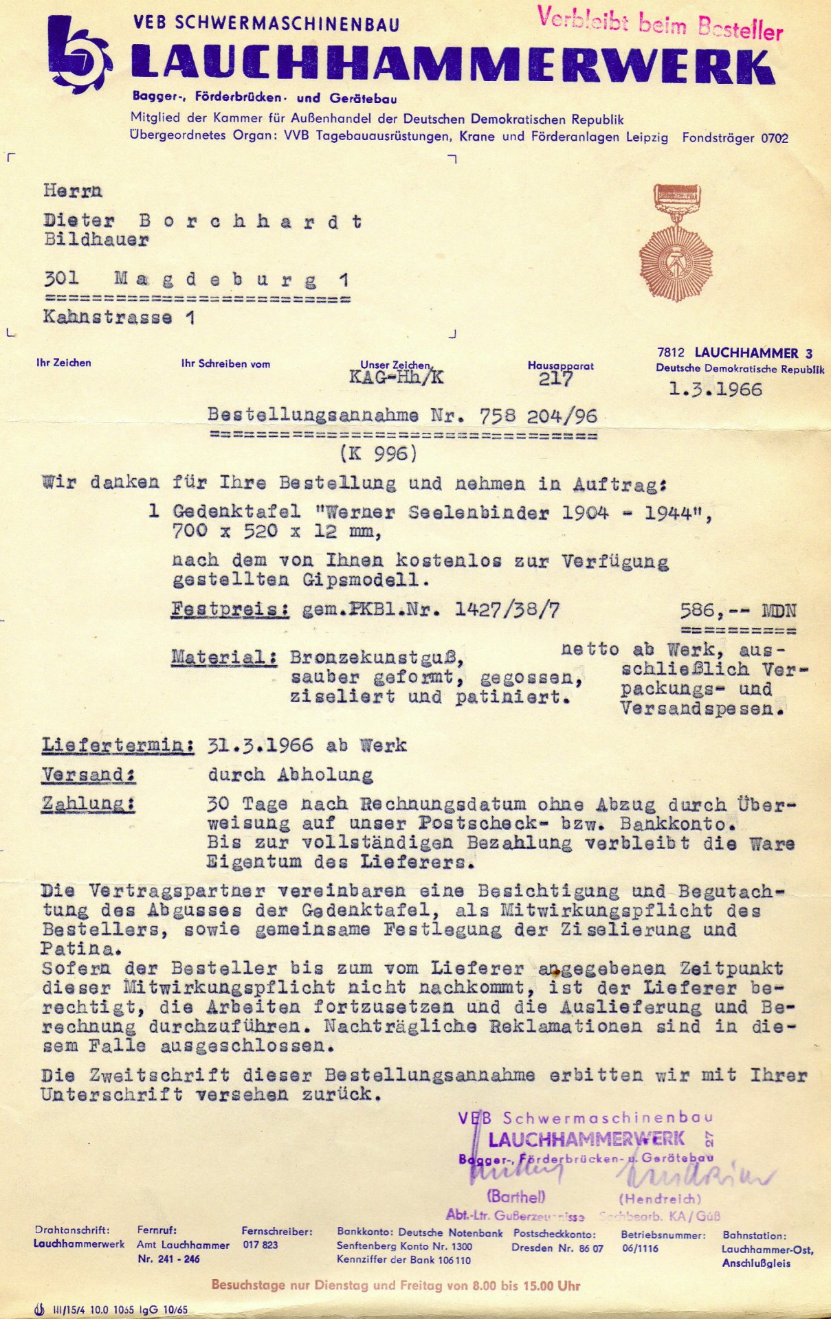 • Bestellannahme Lauchhammer 01.03.1966