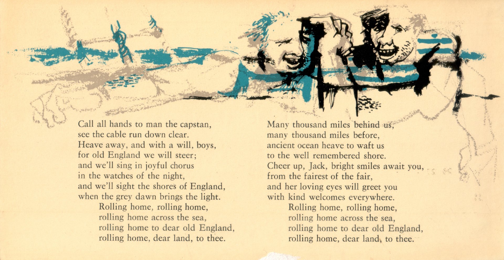 Heinz Bormann (1926 – 1974), Illustration Shanties, Tischkalender, Schiffsmaklerei Rostock, 1969-5