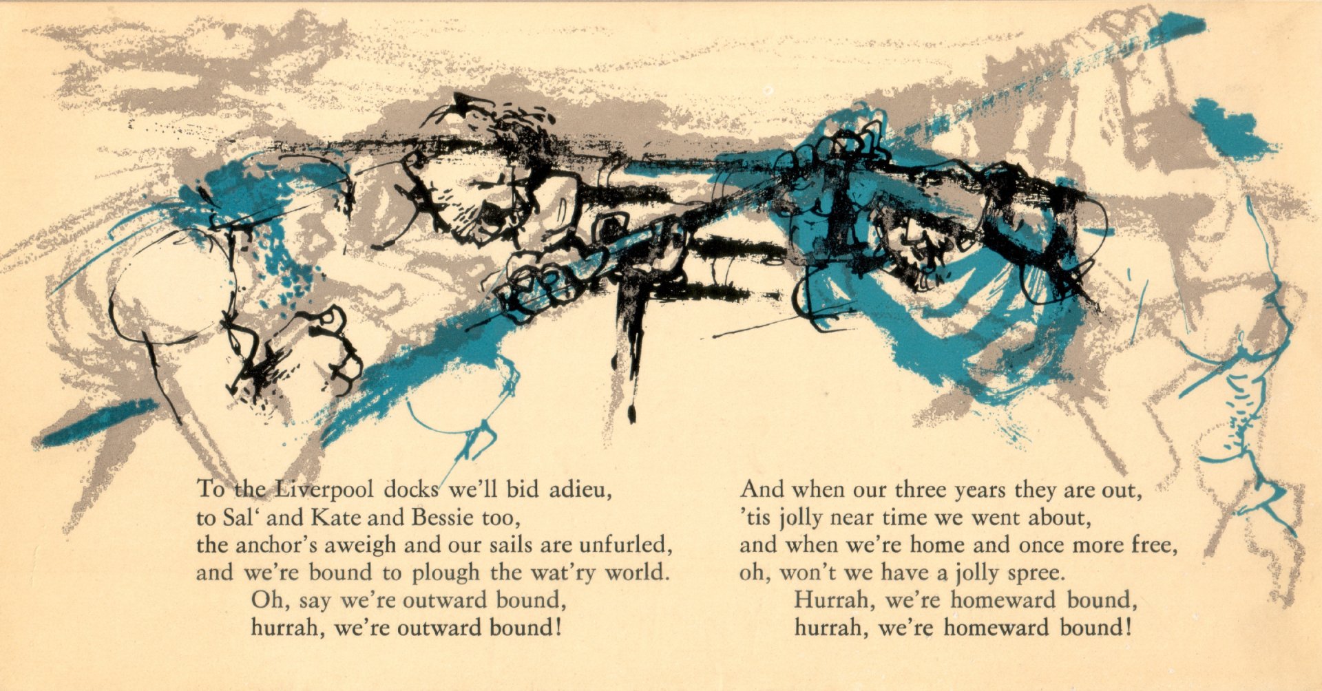 Heinz Bormann (1926 – 1974), Illustration Shanties, Tischkalender, Schiffsmaklerei Rostock, 1969-6