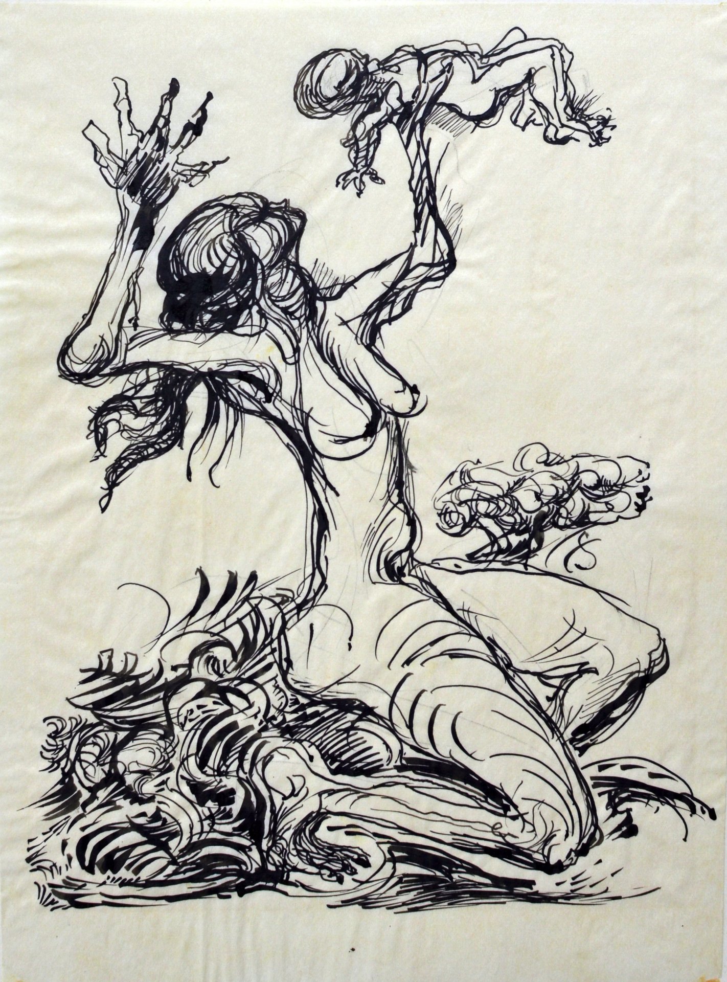 Federzeichnung auf Pergamentpapier, unsigniert; 34 x 25 cm