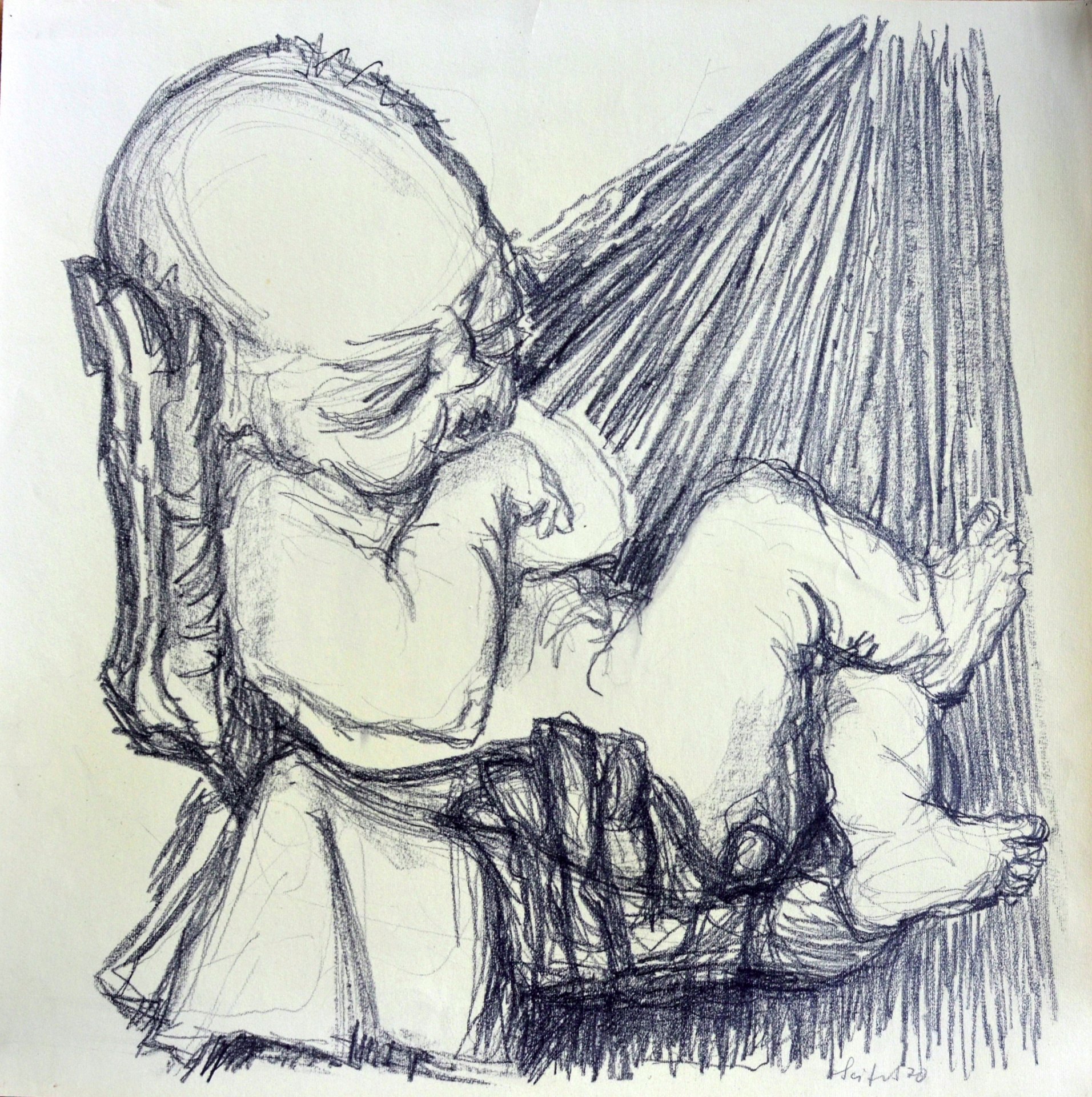 Bleistiftzeichnung auf Zeichenkarton, ohne Titel, unten rechts signiert: „Seifert 70“, 50 x 50 cm