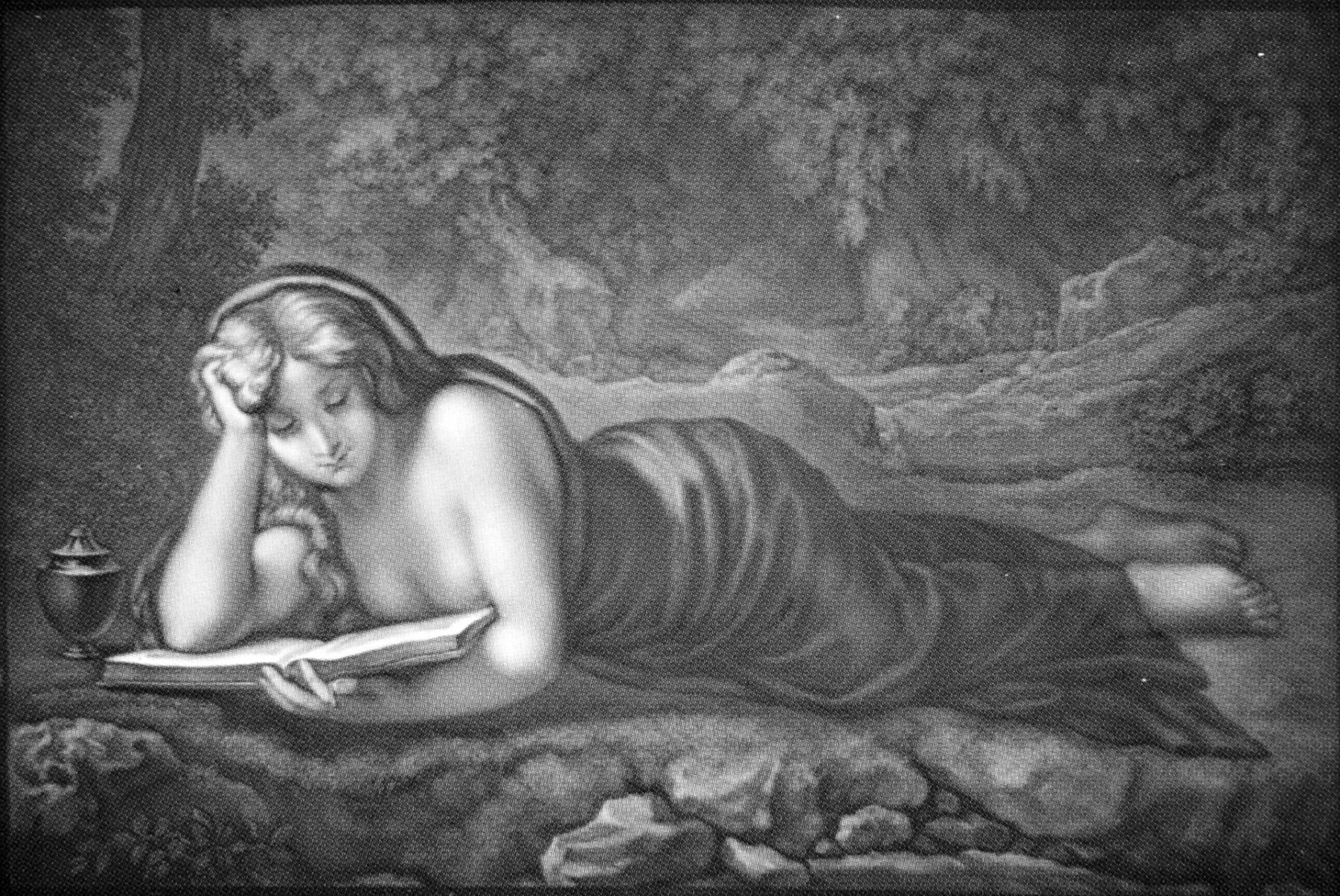 Porzellanmanufaktur Meißen, Lithophanie, Modell Meißen 247, im Preis-Courant bezeichnet: „Magdalena nach Correggio“, nach dem Gemälde von Antonio da Correggio (1489-1534). 16,5 x 24,1 cm.