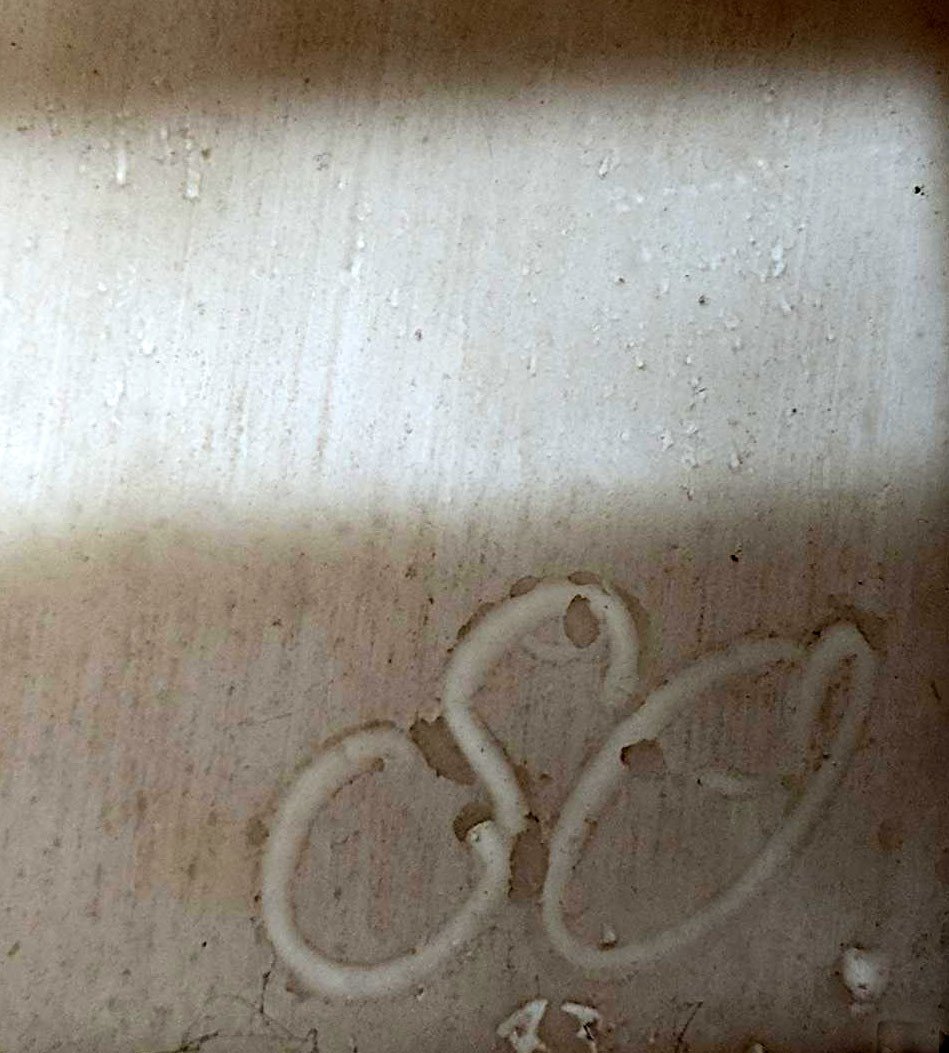 Lithophanie, Modell 80, im Preis-Courant bezeichnet: „Christus mit Kelch“; im Lichtschirmständer aus Holz; Vorlage ist das Gemälde „Christus, Brot und Wein segnend“ von Carlo Dolci (1616-1686), Gemäldegalerie Alte Meister Dresden; 19,1 x 15,1 cm,