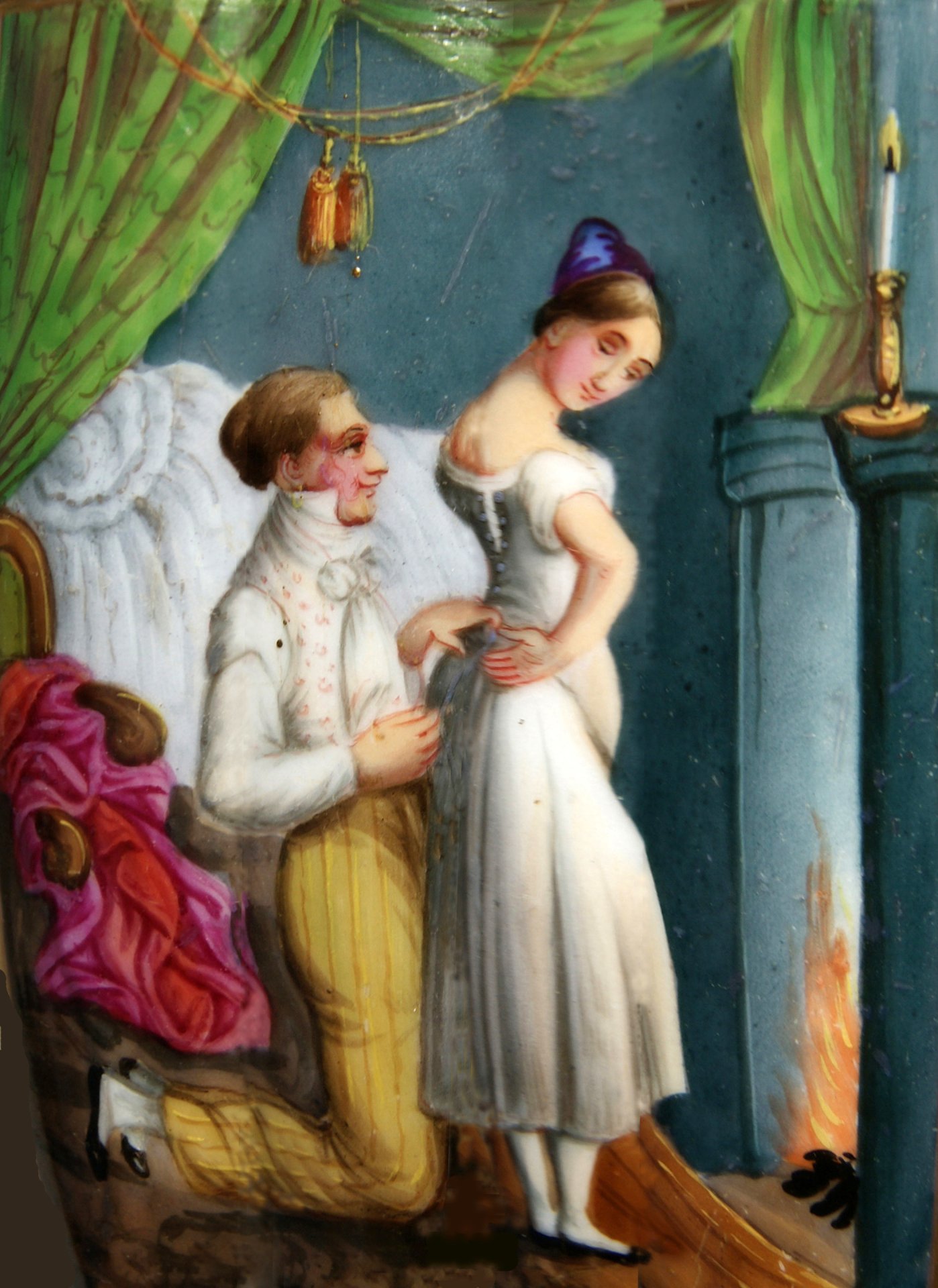 Louis-Frédéric Corréard (1815 – 1858), Die Hochzeitsnacht, Porzellanmalerei, Pfeifenkopf, D0937