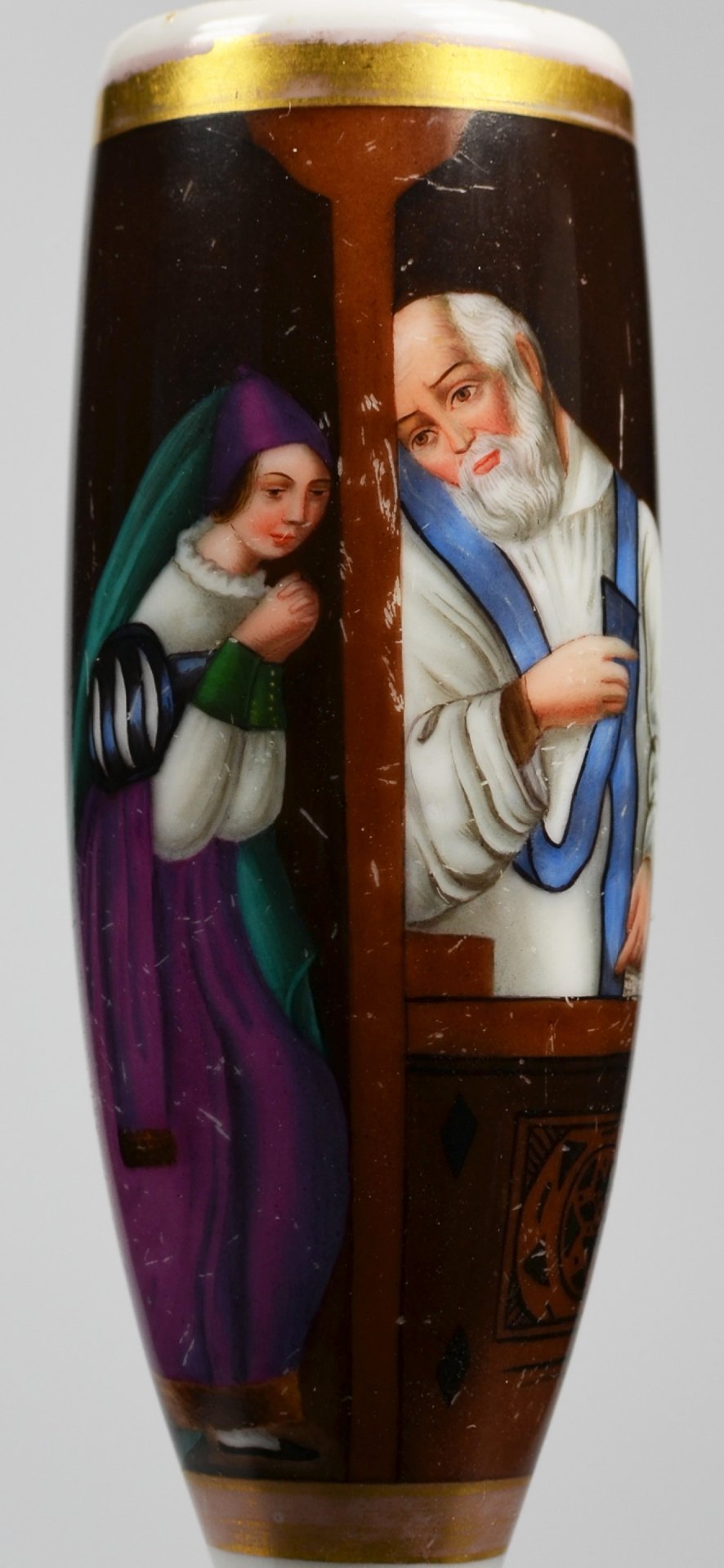 August Wilhelm Esperstedt (geb. 1814), Die Beichte, Porzellanmalerei, Pfeifenkopf, D2120