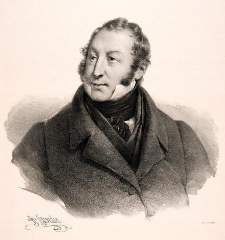 Radierung, unten rechts signiert “H. Grevedon“ mit Abbildung des Halbportraits des italienischen Komponisten Gioachino Antonio Rossini (1792-1868).