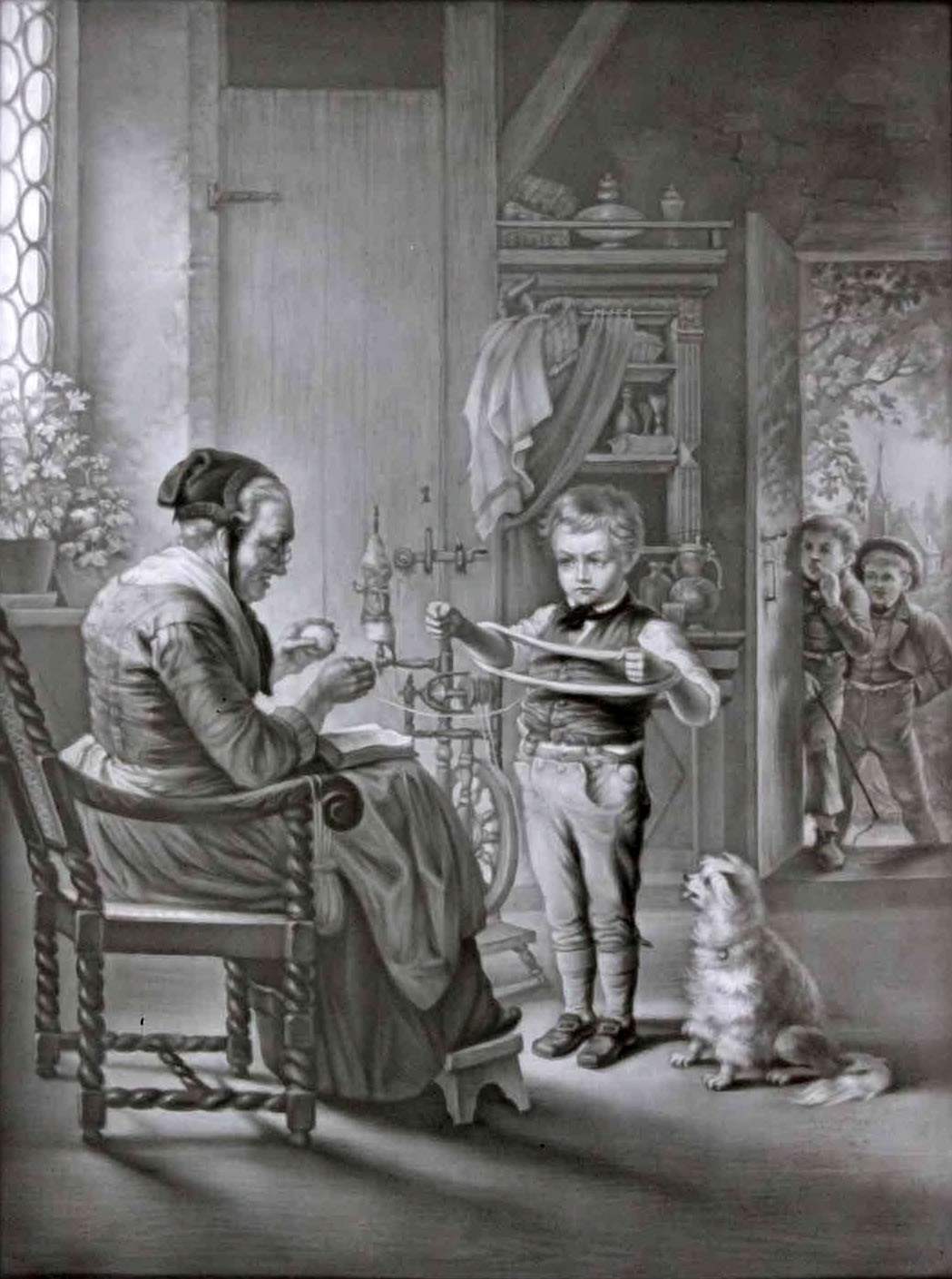Lithophanie, Modell PPM 639, im Preis Courant bezeichnet: „Die Geduld-Probe“; nach einem Gemälde von Johann Hermann Kretzschmer (1811-1890); 19,5 x 15 cm