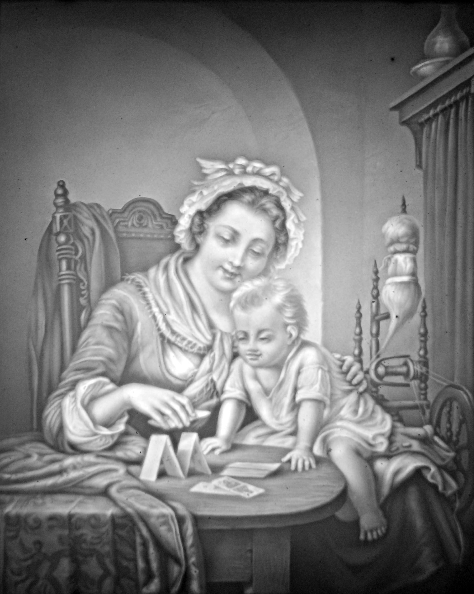 Lithophanie, Modell (PPM) 877, nach dem Gemälde „Das Kartenhaus“ von Johann Hermann Kretzschmer (1811-1890); 13 x 11,2 cm