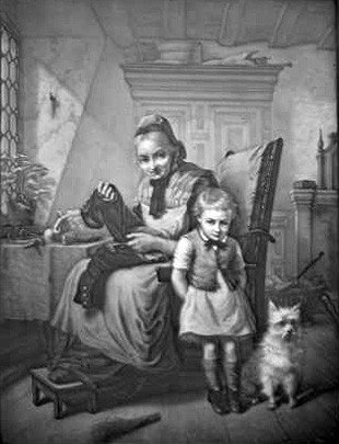 Plaue, Lithophanie Modell PPM 780, nach dem Gemälde von Johann Hermann Kretzschmer (1811-1890) „Die zerrissene Hose“, 19 x 15 cm.