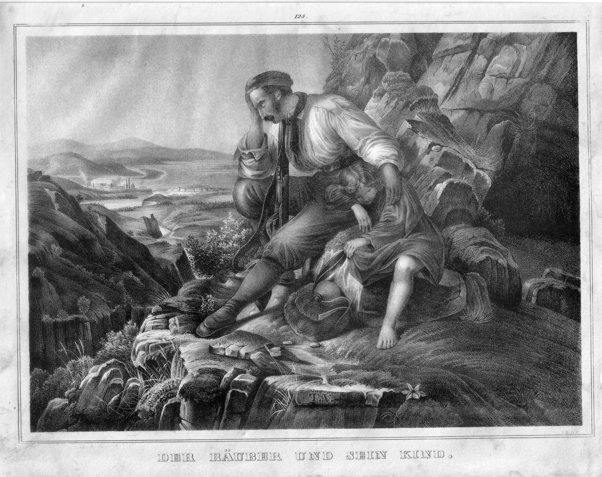 Monogrammist T.V., Der Räuber und sein Kind, nach Lessing, Lithographie, D1448