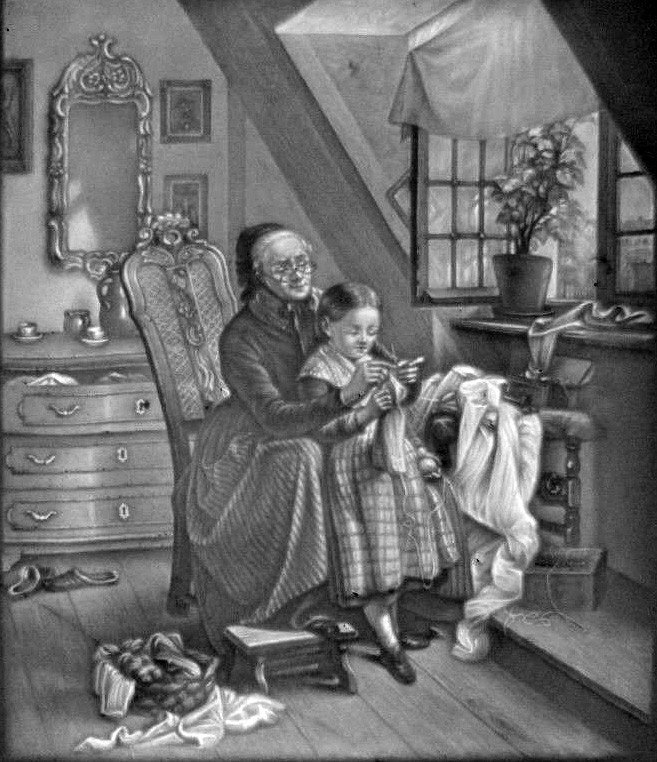 Plaue, Lithophanie Modell PPM 931 nach dem Gemälde von Friedrich Edurad Meyerheim (1808-1879), 16 x 13,5 cm
