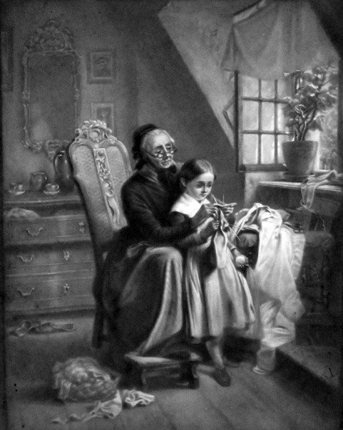 KPM 480 „Unterricht im Stricken“ nach Meyerheim