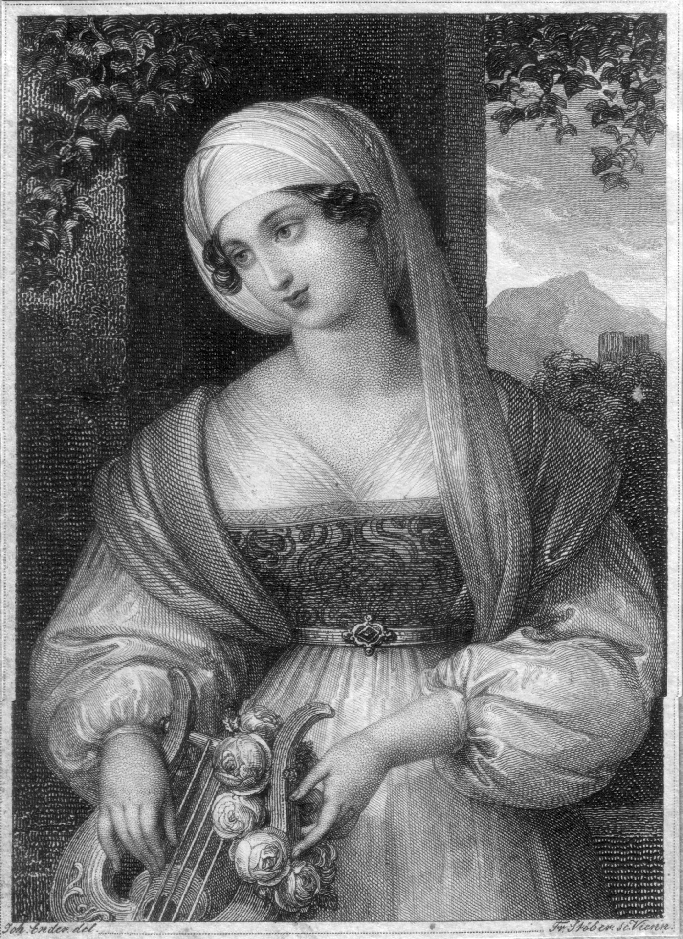 Stahlstich , ohne Titel, gemalt von seinem Schwager Johann Nepomuk Ender (1793-1854), wohl Illustration in einem Almanach oder Taschenbuch; 10,5 x 7,6cm