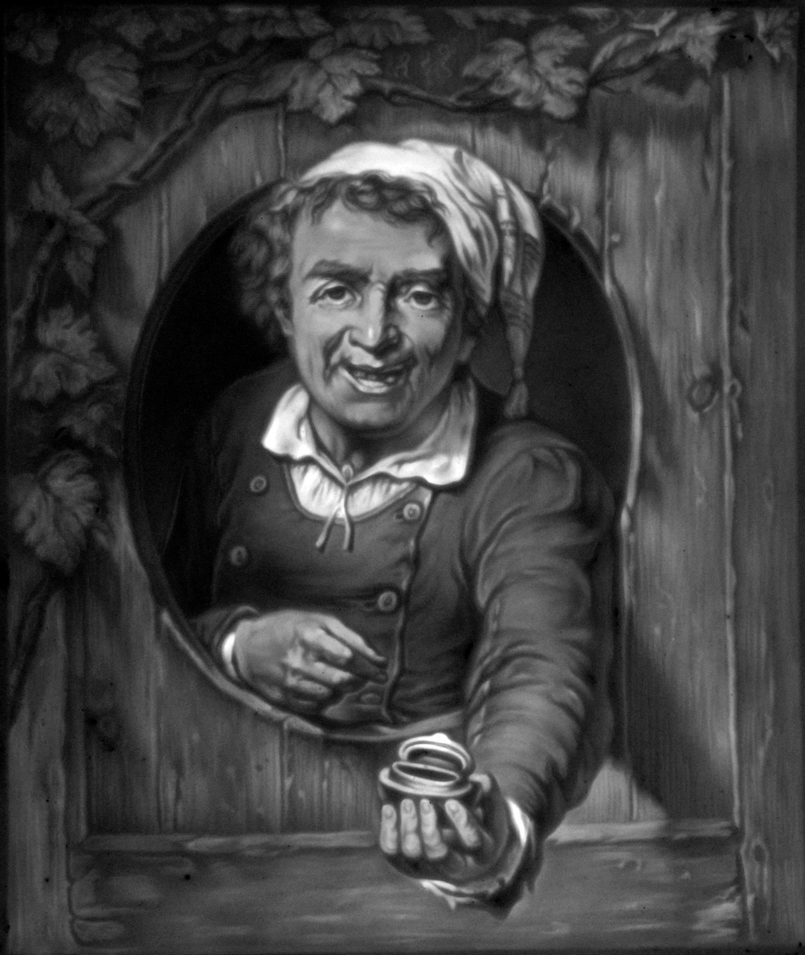 Lithophanie, im Preis-Courant bezeichnet: Der freigebige Schnupfer, nach Vorlage von Francois Verheyden (1806-1889); 13,1 x 11,1cm