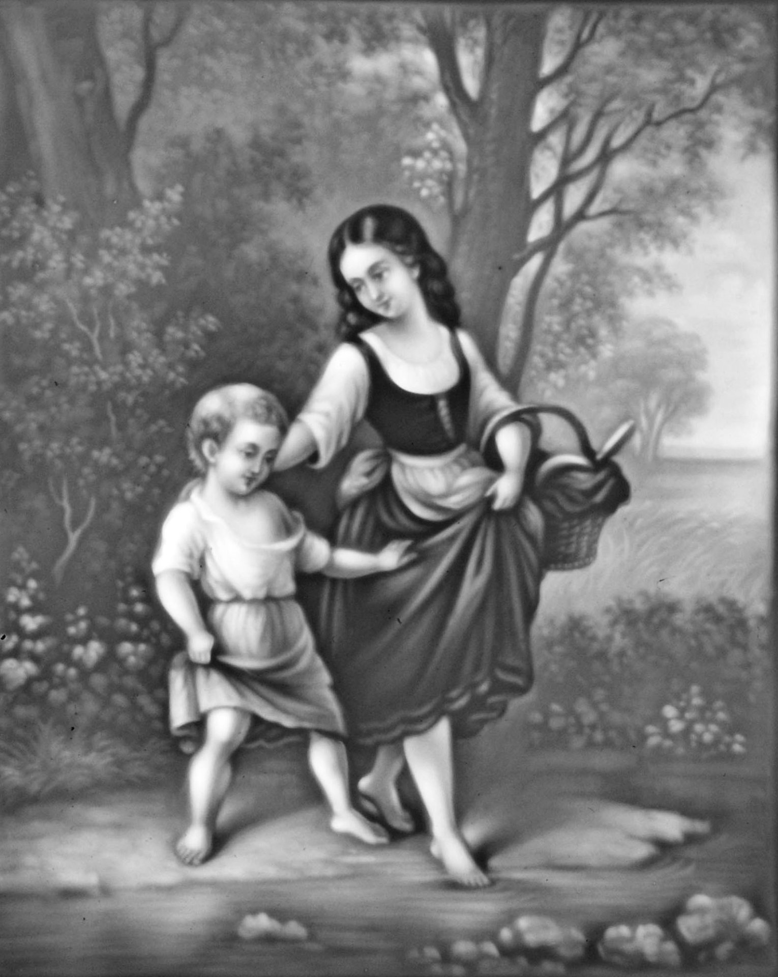 HPM 312    „Geh Hänschen“, Rechteck, Hochformat, lat. Großbuchstaben, nach dem Gemälde von Hermann Werner (Pendant zur „Komm Hans“), Farblithographie von Georg Ludwig Wilhelm Arnould,