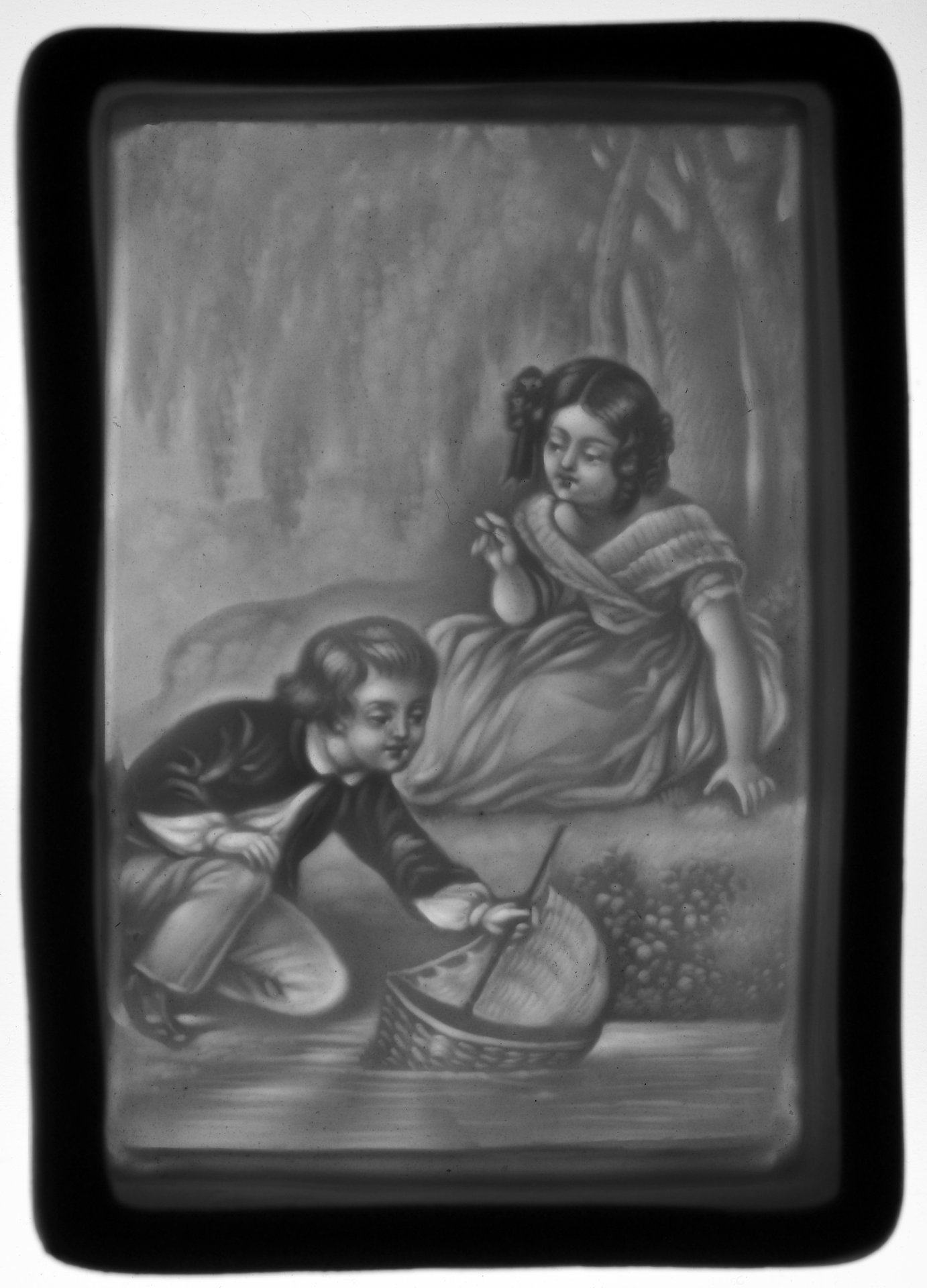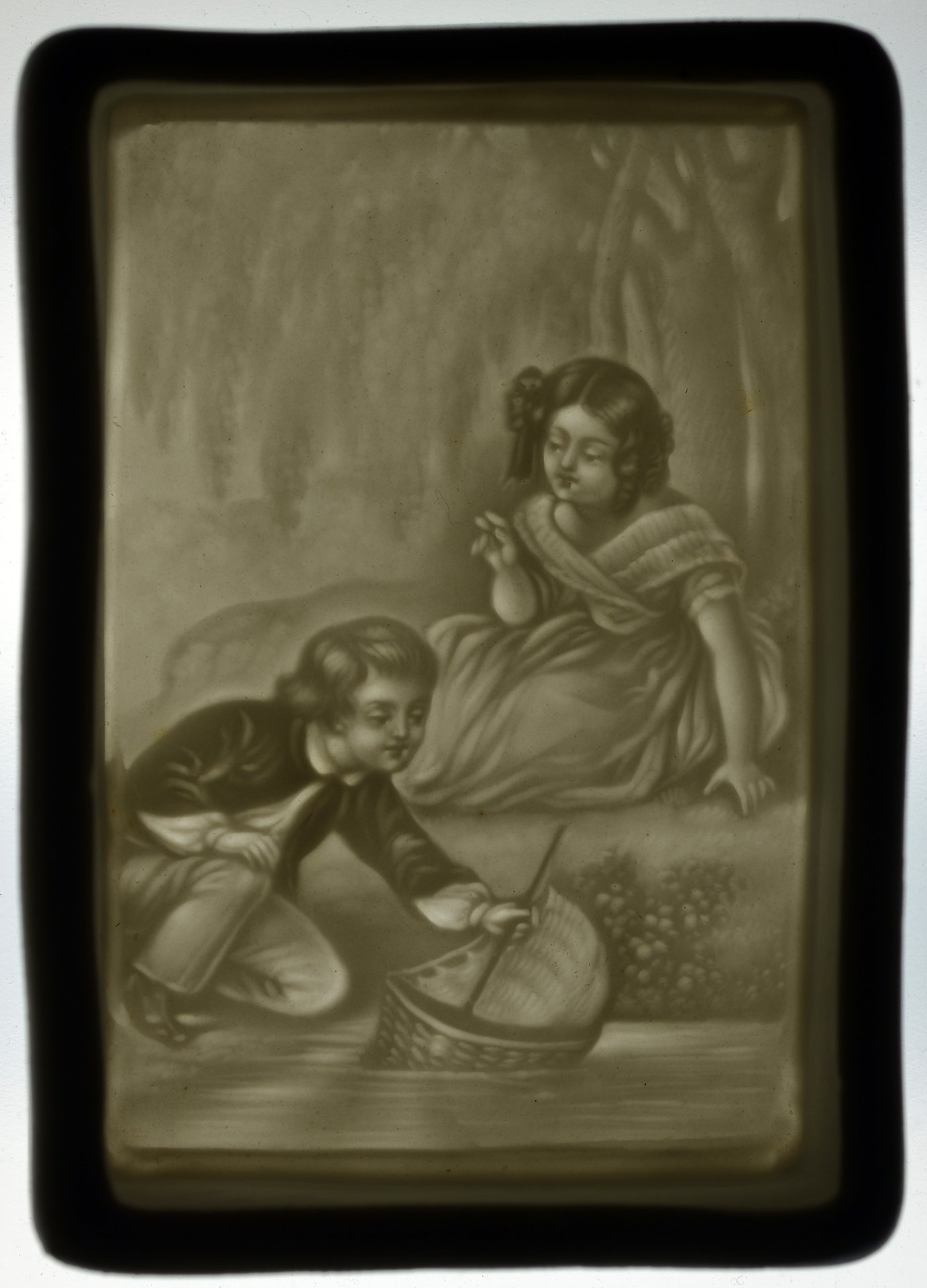 Zündhholzdose aus Porzellan mit Lithophanie, Die kleinen Fischer; D2605
