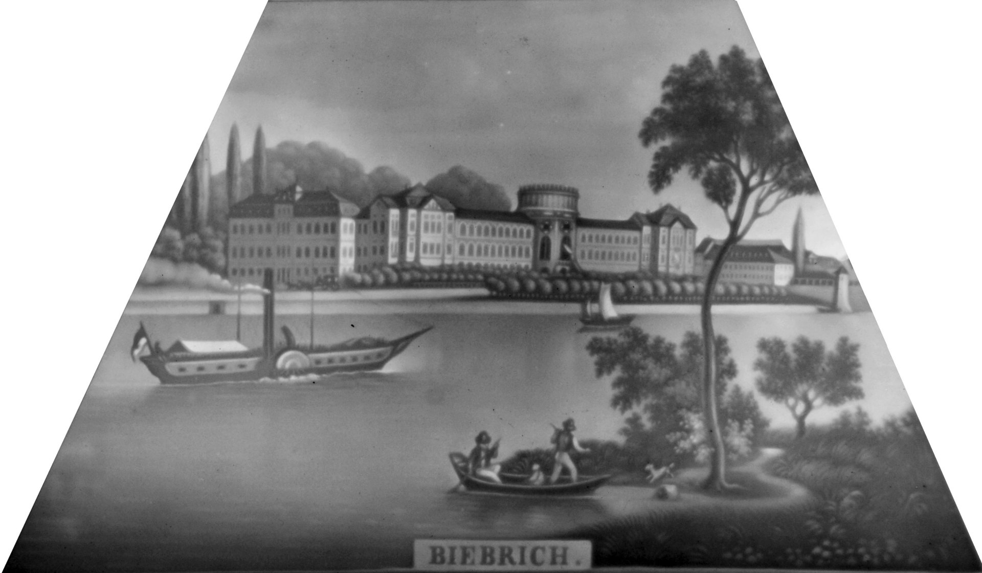 Lithophanie (1844-1850), Modell HPM 256 (Trapez), in der Platte unten bezeichnet: „Biebrich“; Schloss Wiesbaden – Biebrich, 13,2 x 22 x 10,5cm