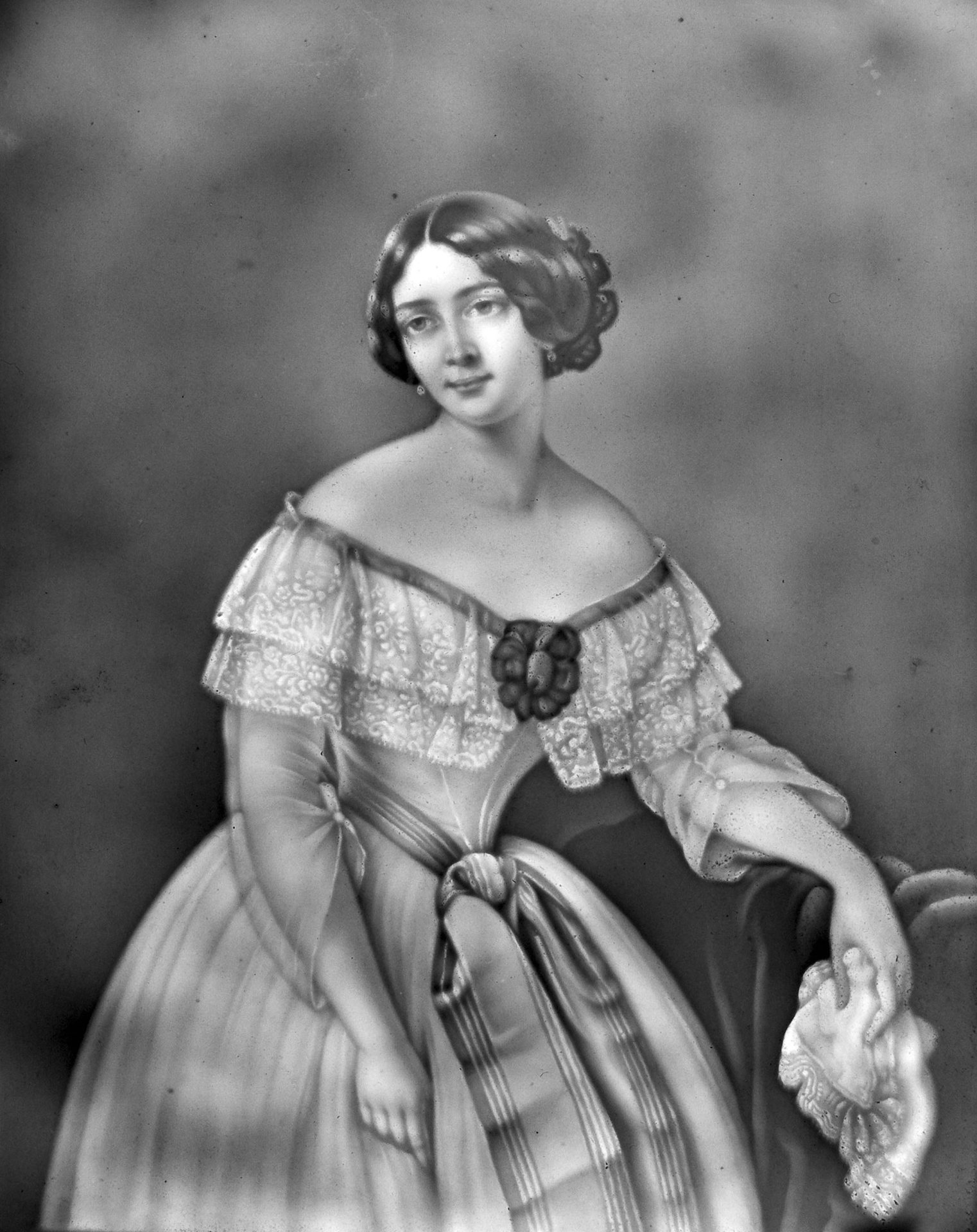 Lithophanie 1850-1853, Modell HPM 6, mit Portrait der Pianistin Clara Schumann, geb. Wieck (1819-1896), Gattin des Komponisten Robert Schumann (1810-1856); 15,9 x 12,9 cm