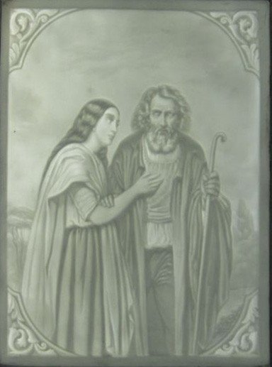 Porzellanfabrik Plaue, Lithophanie, Modell PPM 123, im Preis-Courant bezeichnet: „Elternliebe“. 18,8 x 15,3 cm
