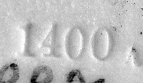 Lithophanie, Modell (PPM) 1400, (Marke nur 1400) für den französischen Markt mit zwei Löchern im oberen Rand, 11,8 x 10,1 cm