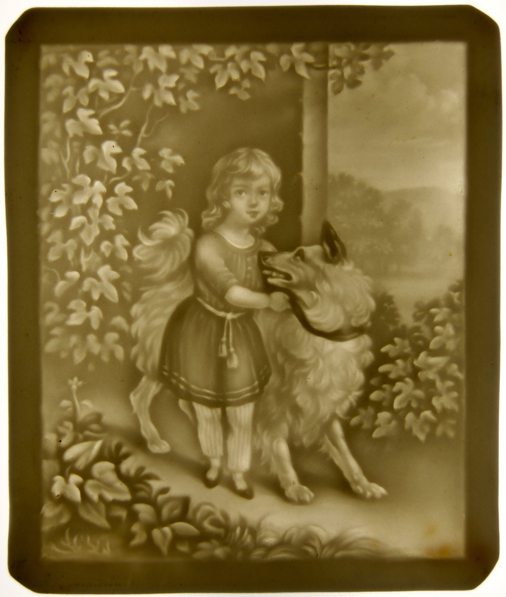 Porzellanfabrik Plaue, Lithophanie, Modell PPM 160, im Preis-Courant bezeichnet: „Kind mit Hund A“. 9,3 x 7,8 cm