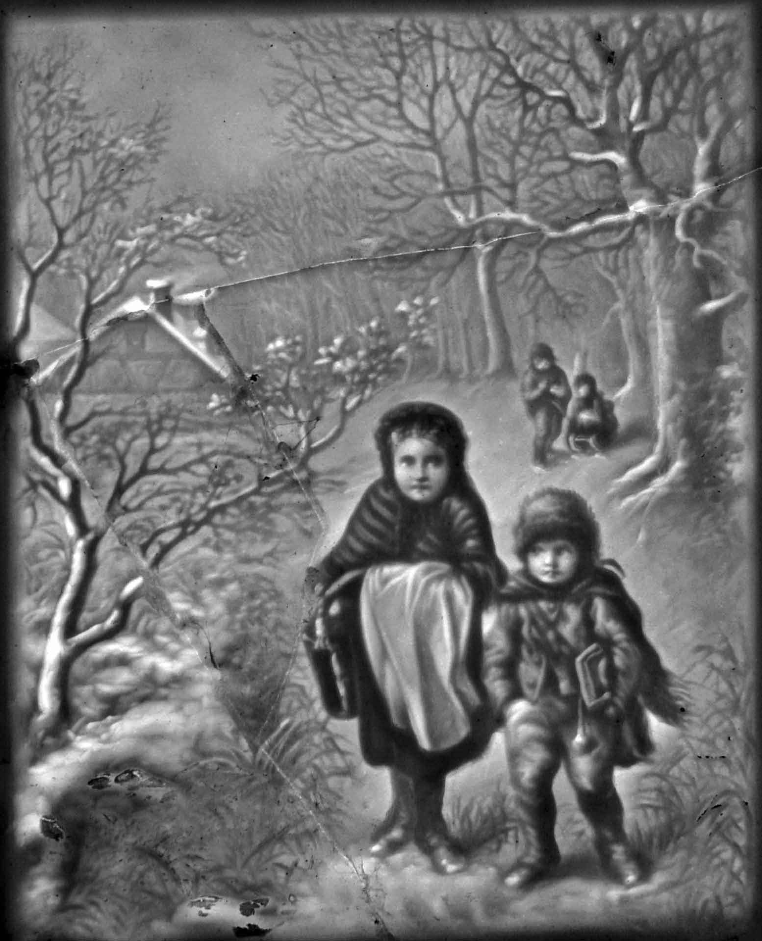Lithophanie, Modell PPM 1188, Kinder im Winterwald, 9,1 x 7,6 cm