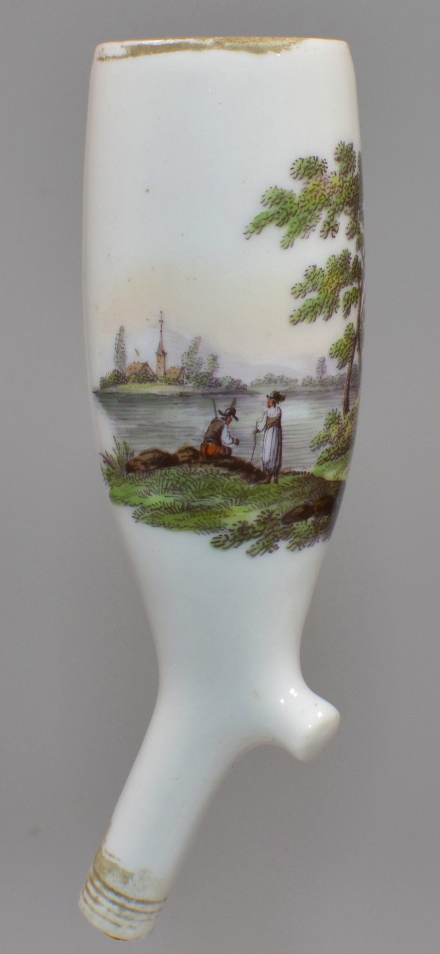 Flußlandschaft mit Angler, Porzellanmalerei, Pfeifenkopf, D2073