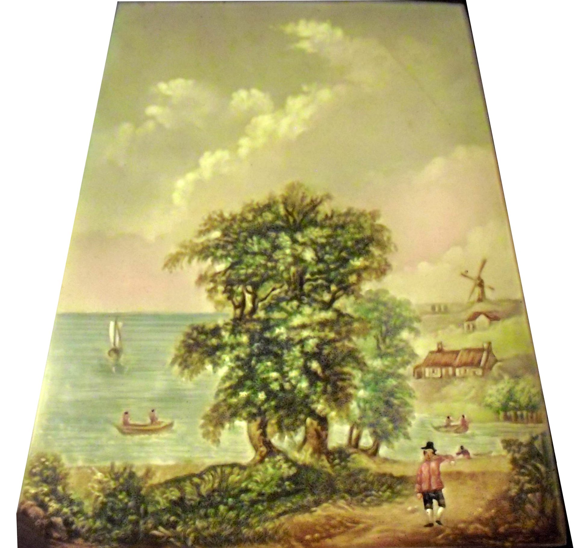 Kolorierte Lithophanie, Modell Trapez 5 – In dem handschriftlich überlieferten Modell-Katalog um 1870 bis 1875 „Schräge Lithophanien“, Nr. 1 bis Nr. 127, ist die Modell-Nr. 5 bezeichnet: „Niederländische Landschaft“, vergl. /213, Seite 542/; 13,3 x 13,8 x 9,0cm.