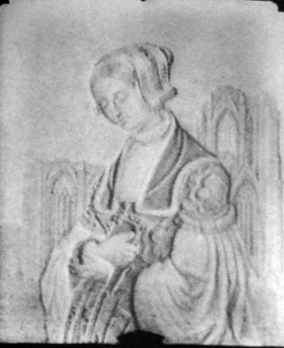Porzellanfabrik Plaue, Lithophanie Modell PPM 4, bezeichnet „Kirchgängerin“ nach dem Gemälde 1834 „Die Kirchgängerin“ nach Louis Ammy Blanc (1810-1885), 18,4 x 15,9 cm